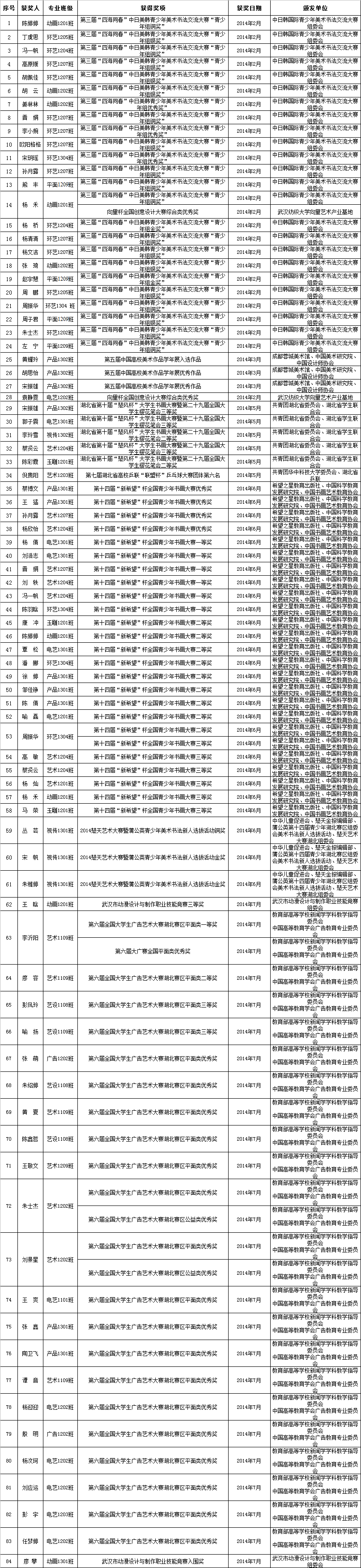 2014-2015学年度艺术设计学院学生校外获奖名单(部分)
