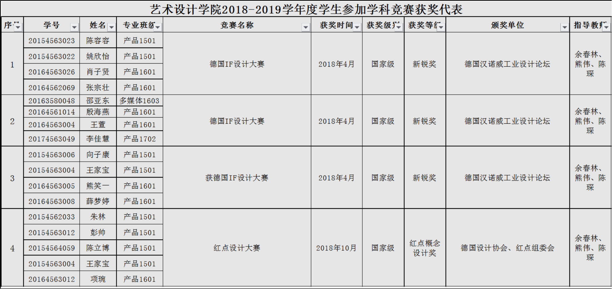 | 2018-2019学年度学生参加综合类竞赛获奖统计表 |