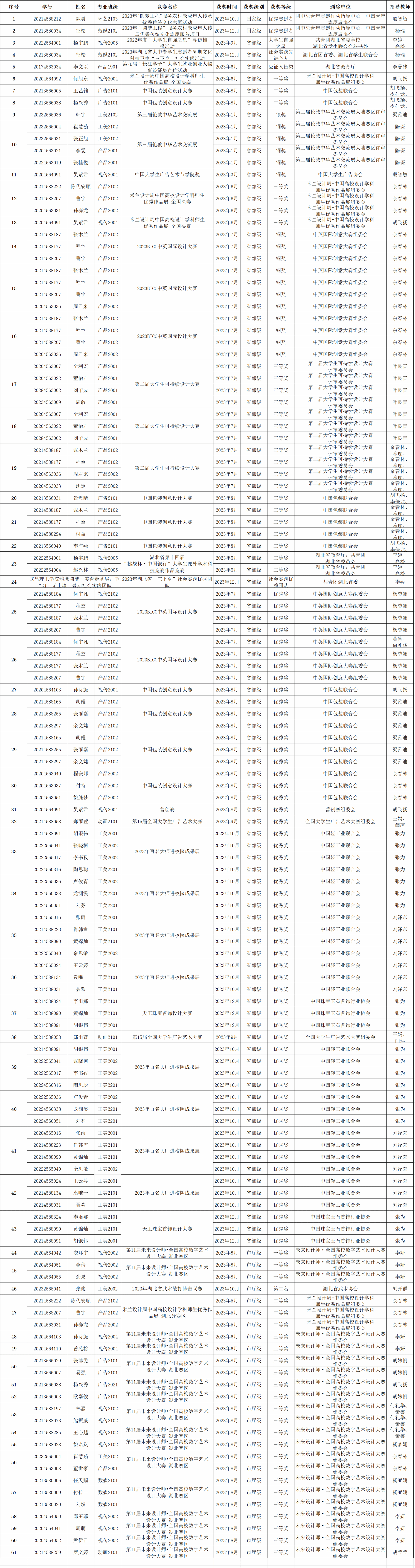 2022-2023学年度艺术设计学院学生校外获奖名单(部分)