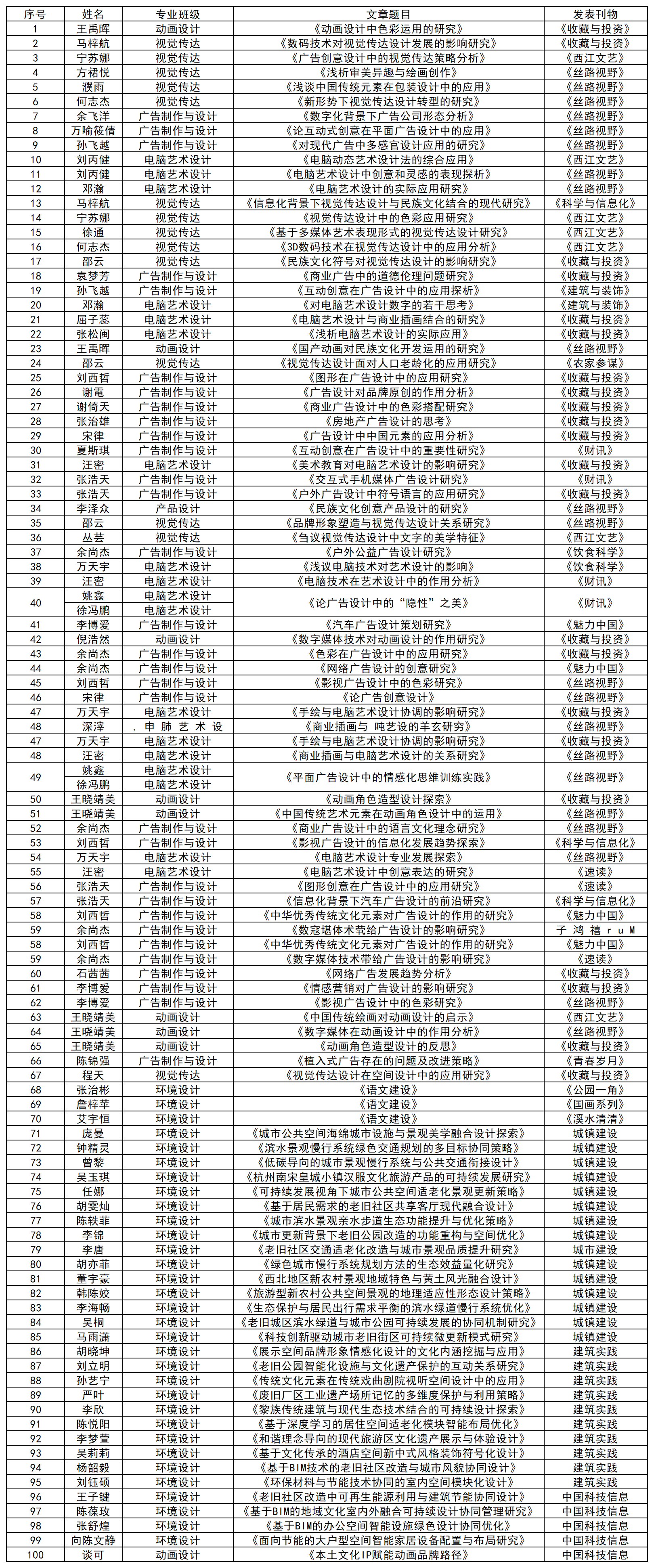 2138cn太阳集团城学生发表论文统计表(部分)