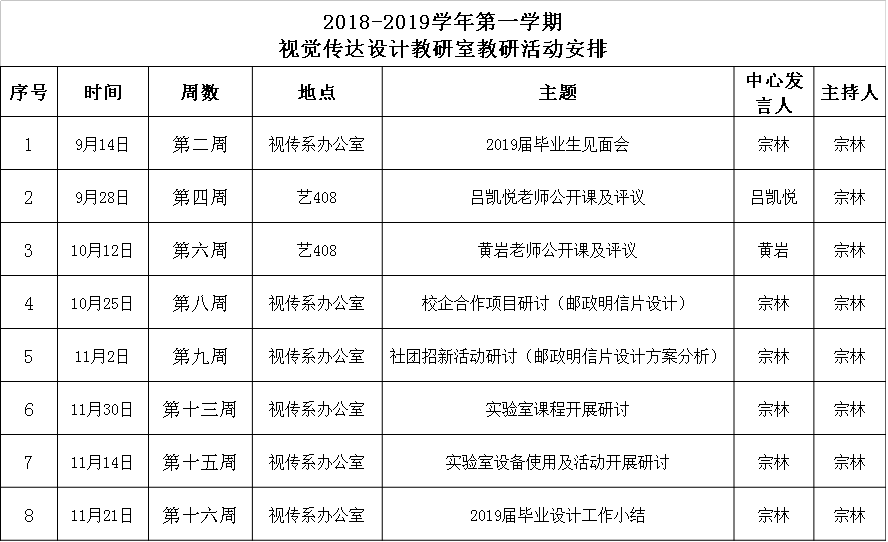 2018-2019-1教研活动安排表