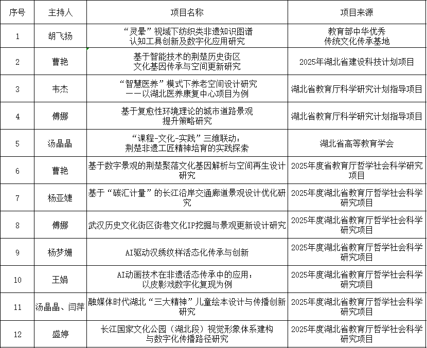 2025年艺术设计学院科研项目统计表(部分)