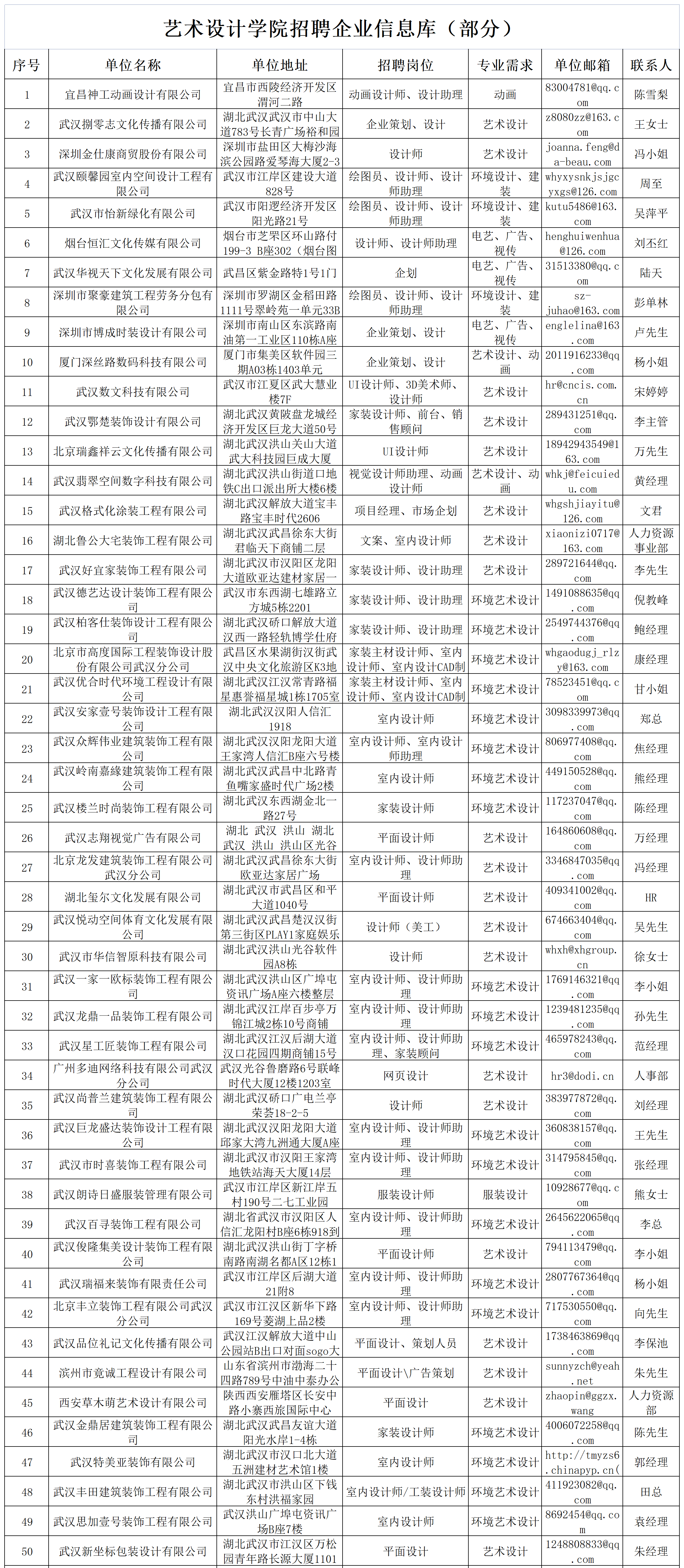 | 艺术设计学院招聘企业信息库(部分) |