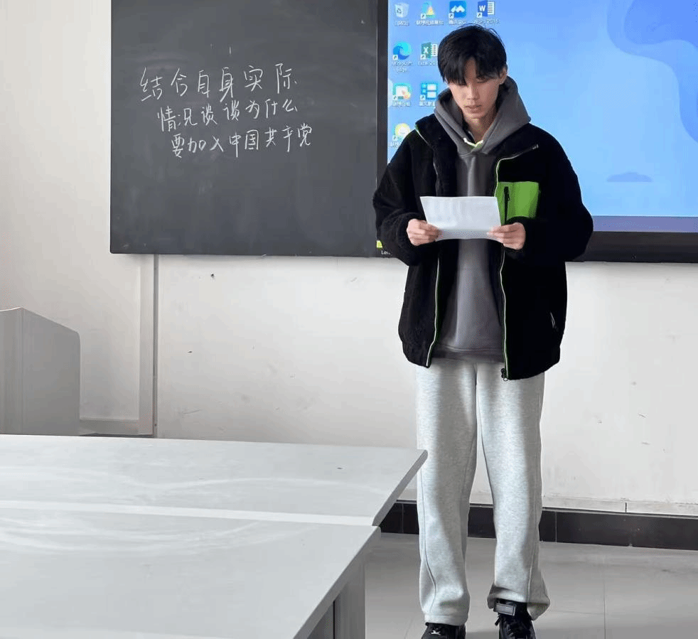 活动在庄严的国歌声中拉开帷幕。演讲者们从不同视角分享了入党动机与思想感悟:有的同学讲述了红色家风的代际传承,“父亲是一名驻村党员,他笔记本里‘脱贫户的笑容就是最好的党徽’这句话,让我明白了共产党员的初心”;有的结合志愿服务经历动情说道:“在山区支教时,看到党员教师扎根乡村的背影,我读懂了‘奉献’二字的重量”。这些饱含温度的青春故事,生动诠释了“思想上入党”的深刻内涵。