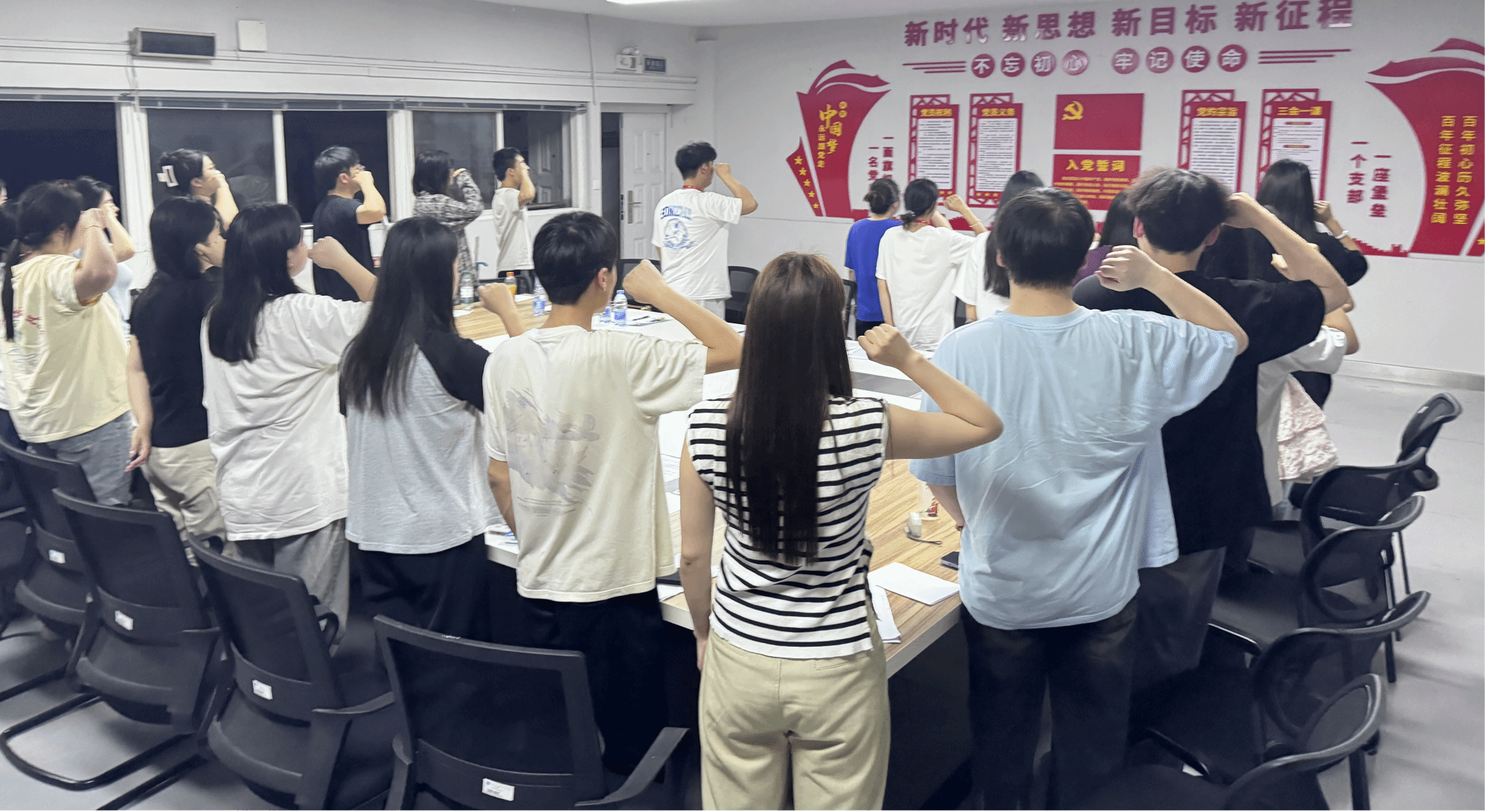 会议最后,陈梦书记带领全体参会成员重温入党誓词。大家高举右拳,目光坚定,以铿锵有力的誓言表达对党的庄严承诺和为共产主义事业奋斗终身的决心。陈梦书记对新党员表示祝贺,同时寄语全体党员,希望大家时刻牢记入党誓词,以党员标准严格要求自己,充分发挥先锋模范作用,在学习和生活中展现党员风采。