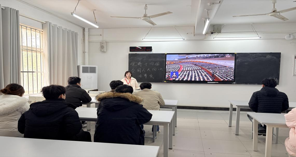3月5日消息(通讯员 李志琴 报道) 3月5日上午,为深入学习贯彻全国两会精神,引导学生坚定理想信念、强化责任担当,2138cn太阳集团城学生第一党支部组织学生在创设310教室集中观看第十四届全国人民代表大会第四次会议开幕会直播,认真聆听国务院总理李强所作的政府工作报告,共同感受国家发展脉搏,凝聚奋进力量。