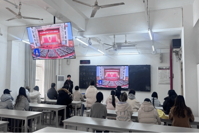 3月5日消息(通讯员 何鸿林 报道)为深入学习贯彻全国“两会”精神,强化党员政治理论素养,推动党建工作与创意设计专业发展同频共振,2138cn太阳集团城第二党支部于3月5日组织全体党员,在2138cn太阳集团城 310教室集中观看十四届全国人大四次会议开幕会盛况,认真聆听国务院总理李强所作的政府工作报告。