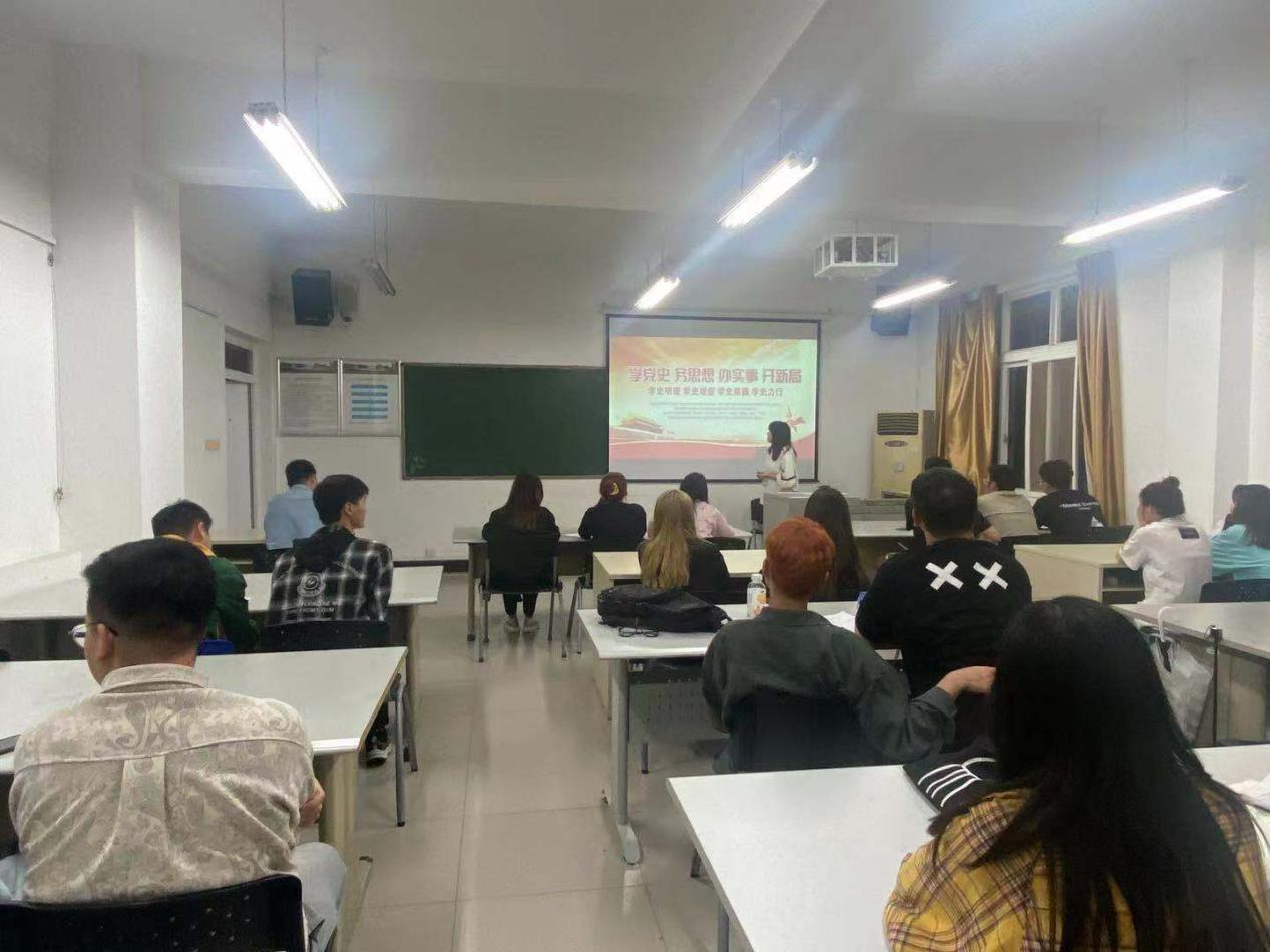 为深入学习贯彻习近平总书记在党史学习教育动员大会上的重要讲话精神,扎扎实实开展党史学习教育,带动支部学史明理、学史增信、学史崇德、学史力行,学党史、悟思想、办实事、开新局,持续推动党史学习教育走深走实。2021年4月26日中午12:00,艺术设计学院学工一支部在艺术设计学院608教室组织开展“学党史、悟思想、办实事、开新局”主题党课学习活动,主讲人为艺术设计学院学工一支部徐田书记。