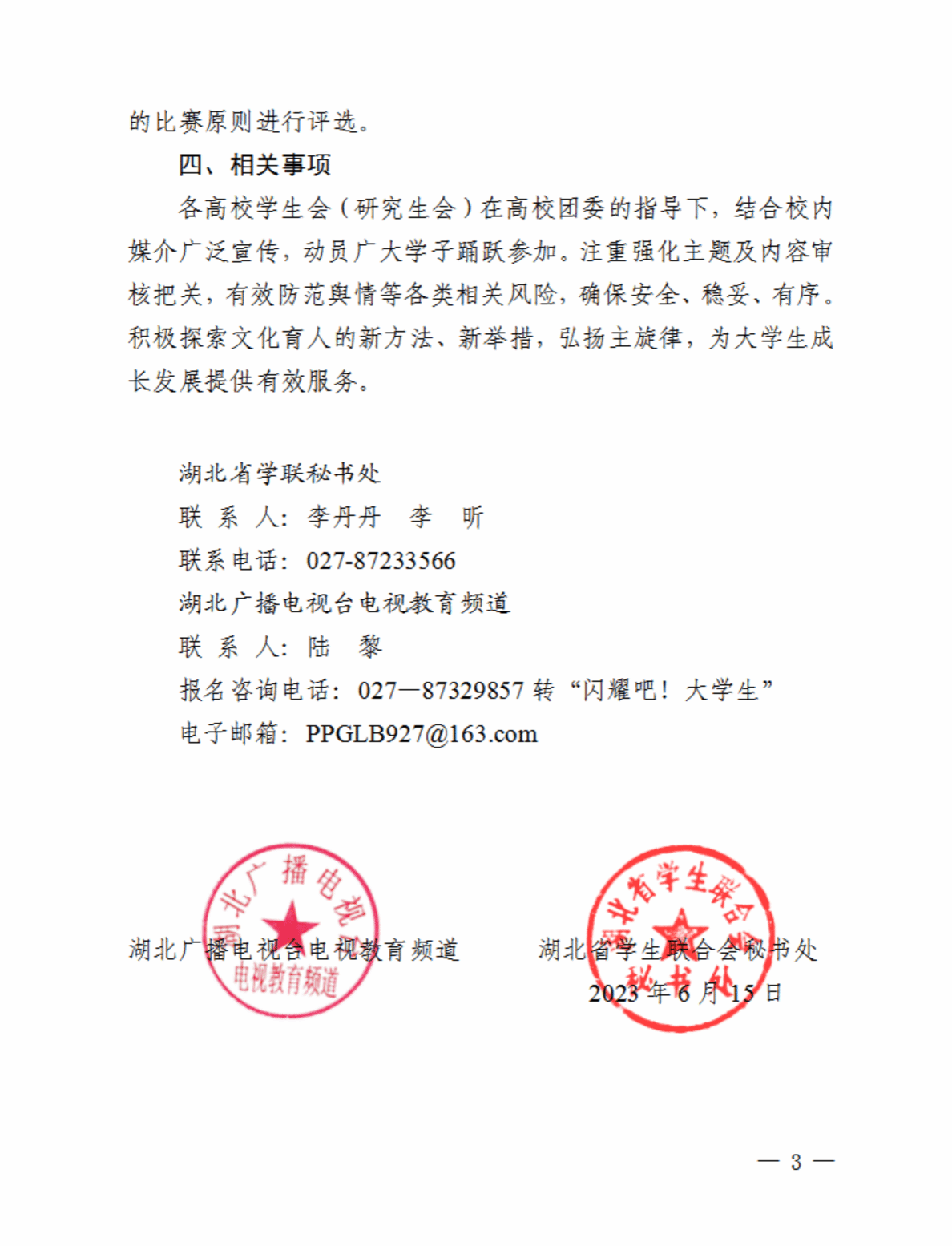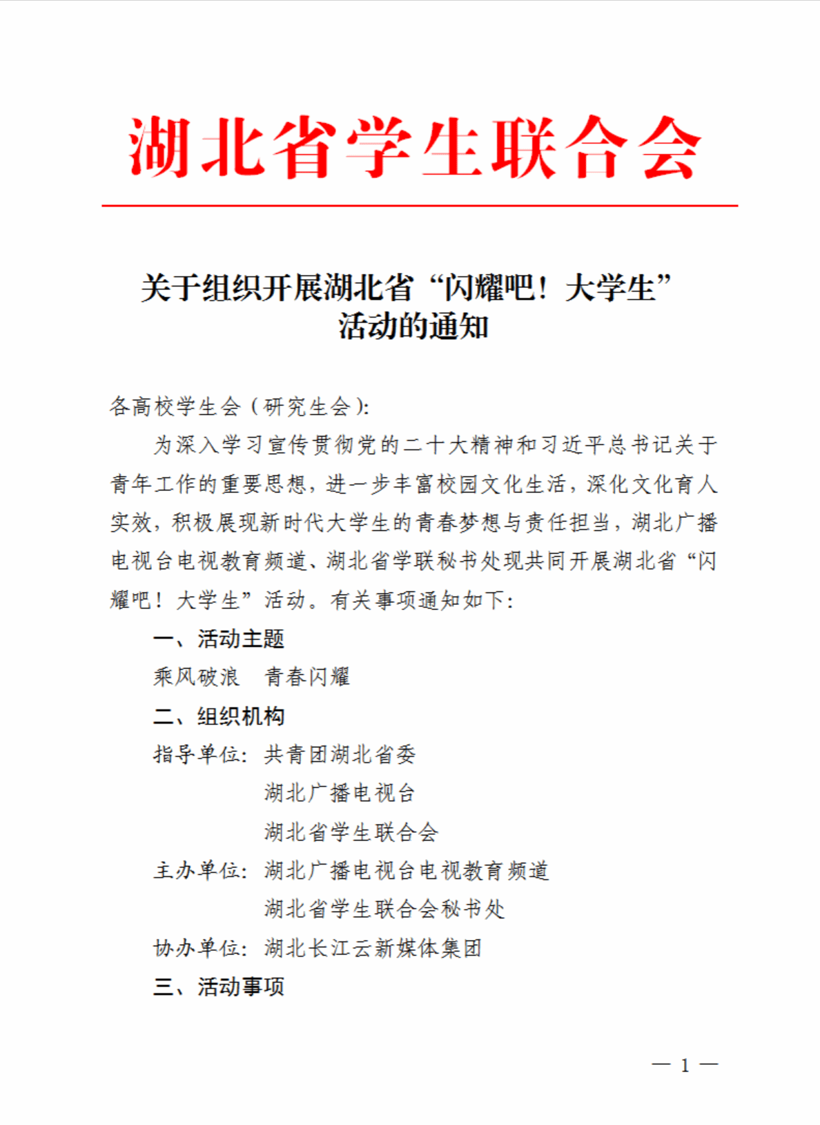 关于组织开展湖北省“闪耀吧!大学生”活动的通知