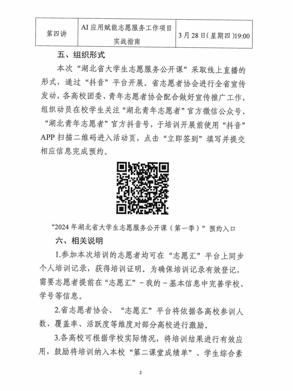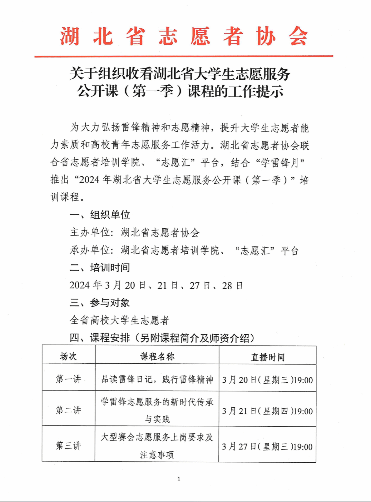 关于组织收看湖北省大学生志愿服务公开课(第一季)课程的工作提示