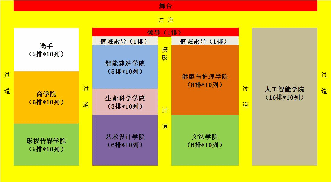 1、请各学院组织学生 18:20 前落座完毕,并安排学生骨干维护秩序,届时校团委将对到勤情况及组织纪律进行考核。