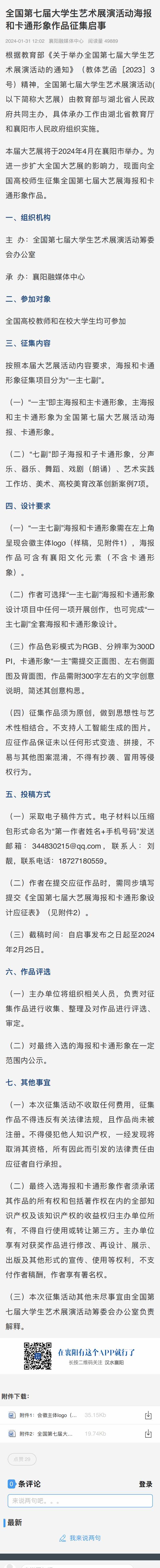 全国第七届⼤学⽣艺术展演活动海报和卡通形象作品征集启事