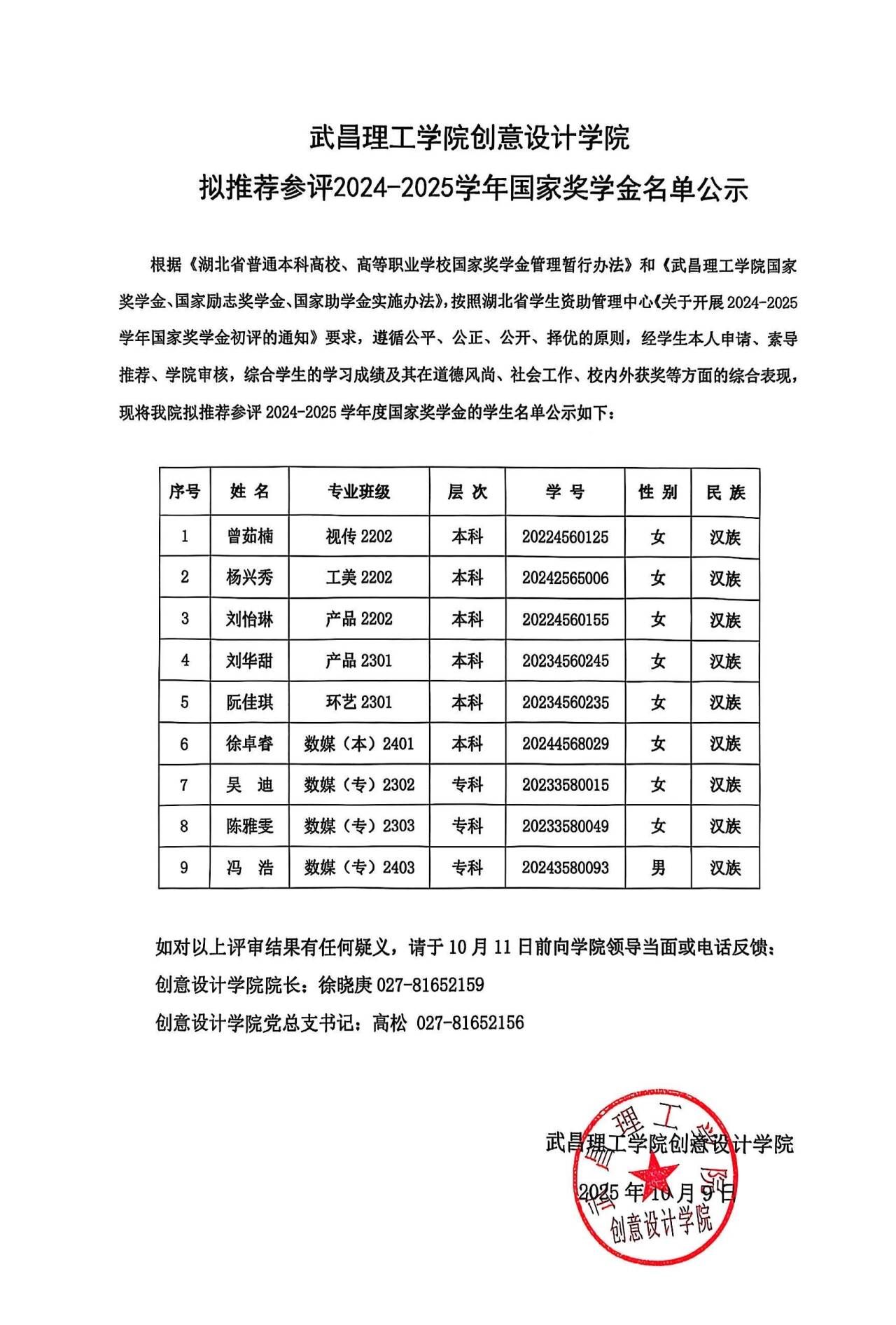 2138cn太阳集团城拟推荐参评2024-2025学年国家奖学金名单公示