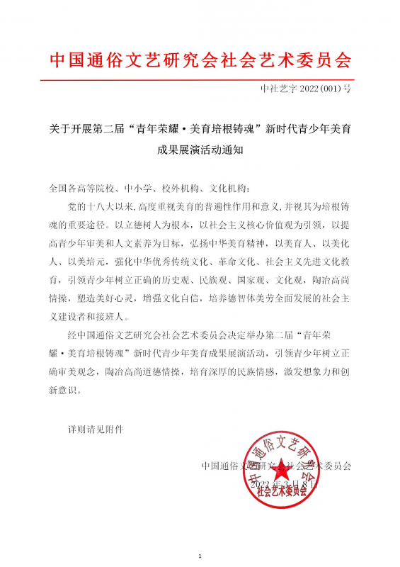 4、优秀艺术作品推荐入选并参与展演活动,展演时间、地点另行通知,详情以下发通知为准。