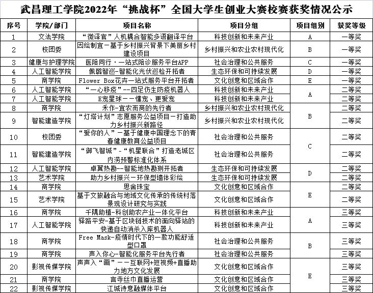 “挑战杯”中国大学生创业计划竞赛是由共青团中央、中国科协、教育部、全国学联主办的大学生课外科技文化活动中一项具有导向性、示范性和群众性的创新创业竞赛活动,每两年举办一届。设科技创新和未来产业、乡村振兴和脱贫攻坚、城市治理和社会服务、生态环保和可持续发展、文化创意和区域合作五个组别。