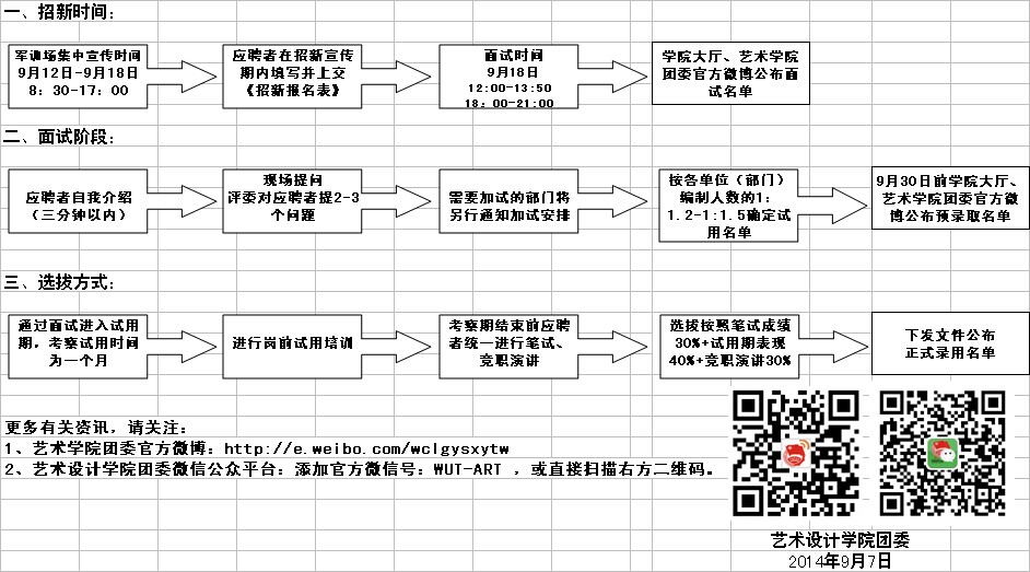2014年艺术设计学院团学组织(团委、学生会)招新流程图