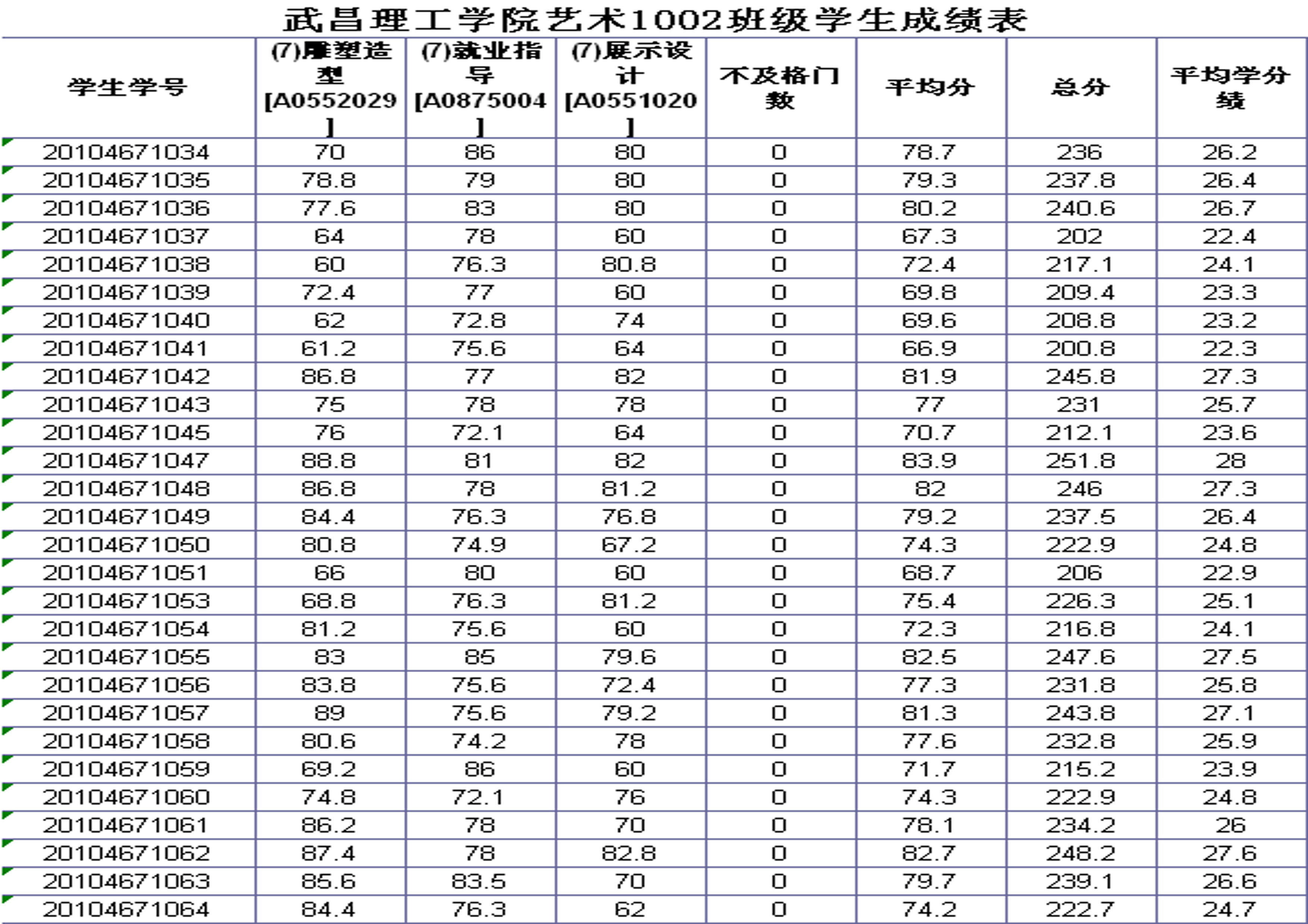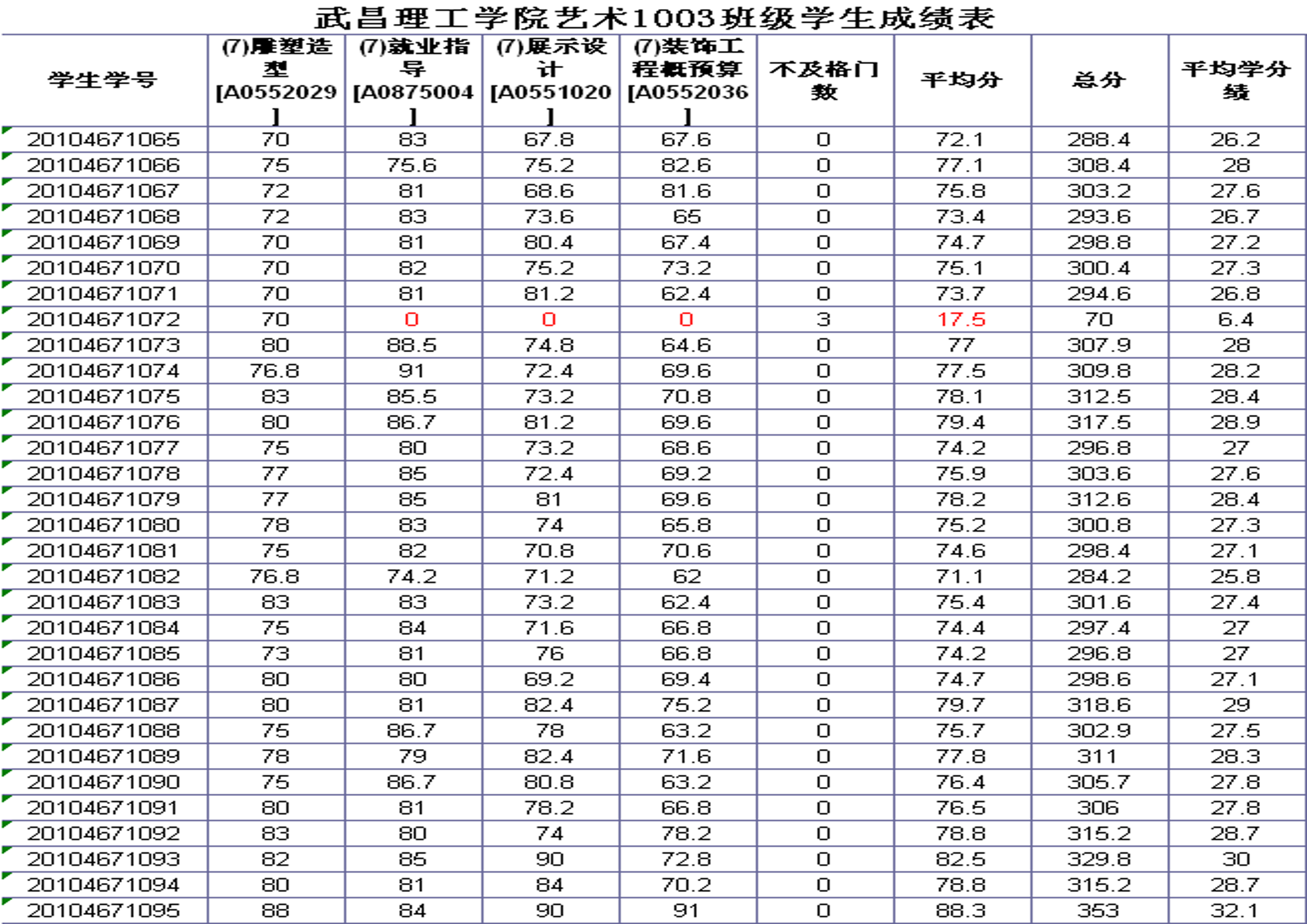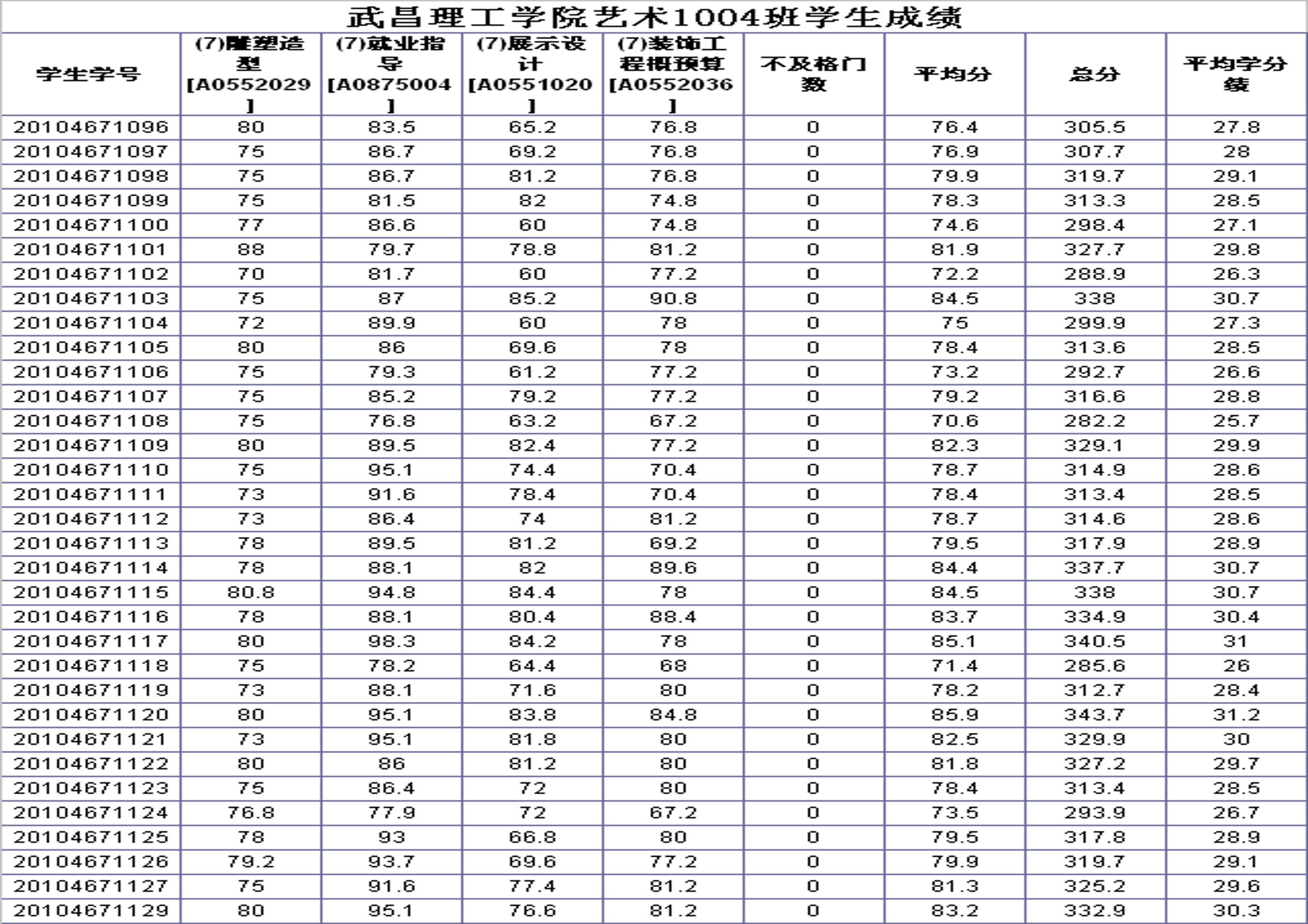 艺术设计学院2013-2014学年度第一学期2010级各专业班级考试成绩