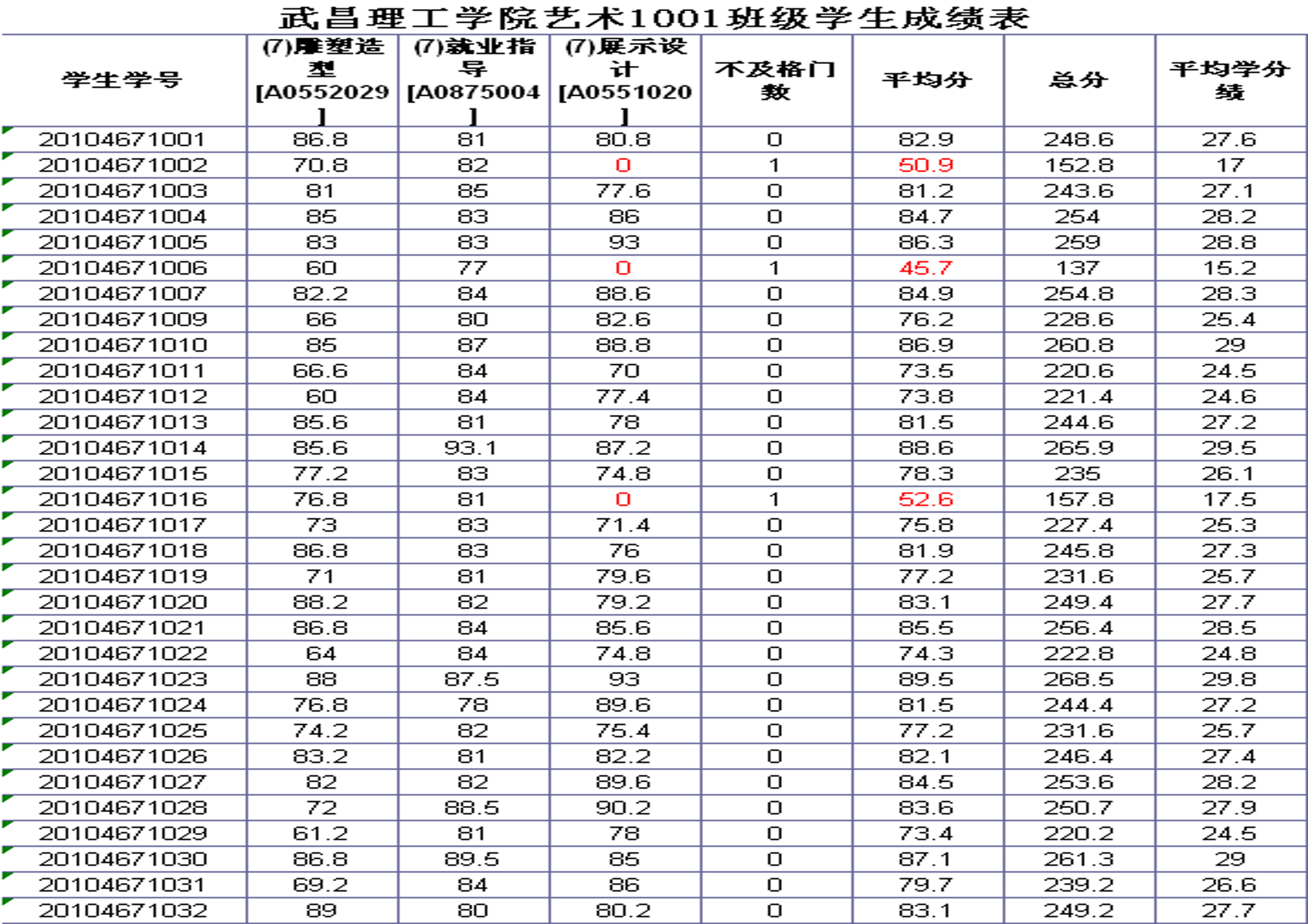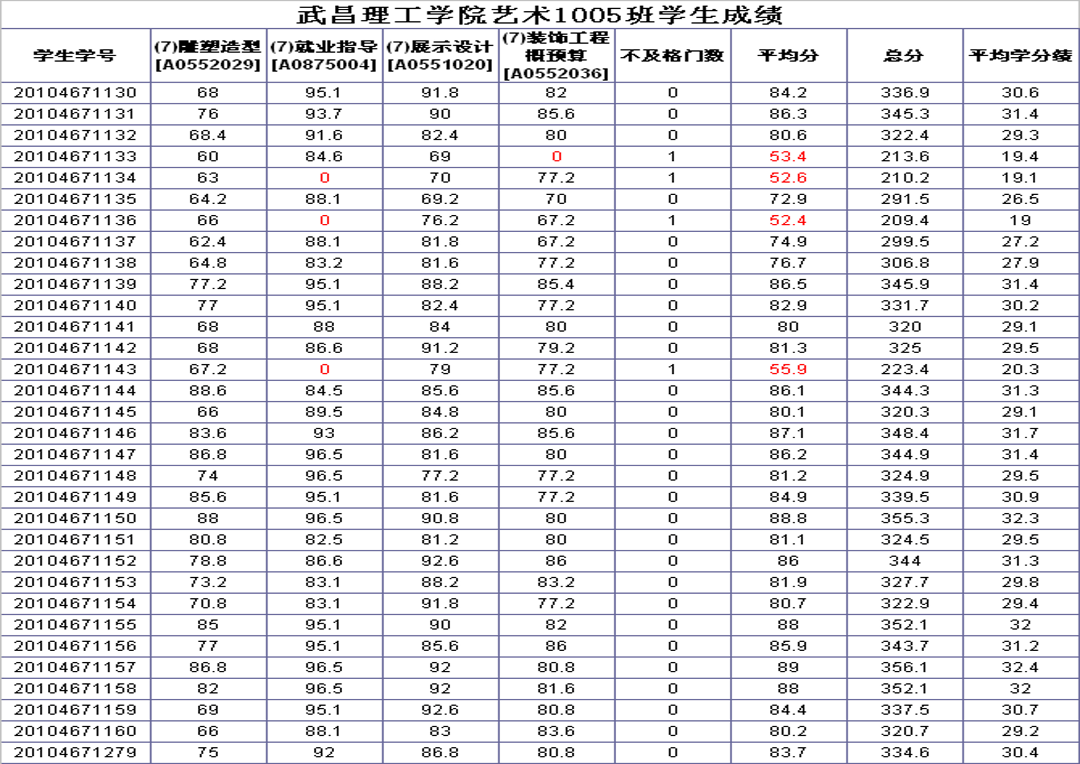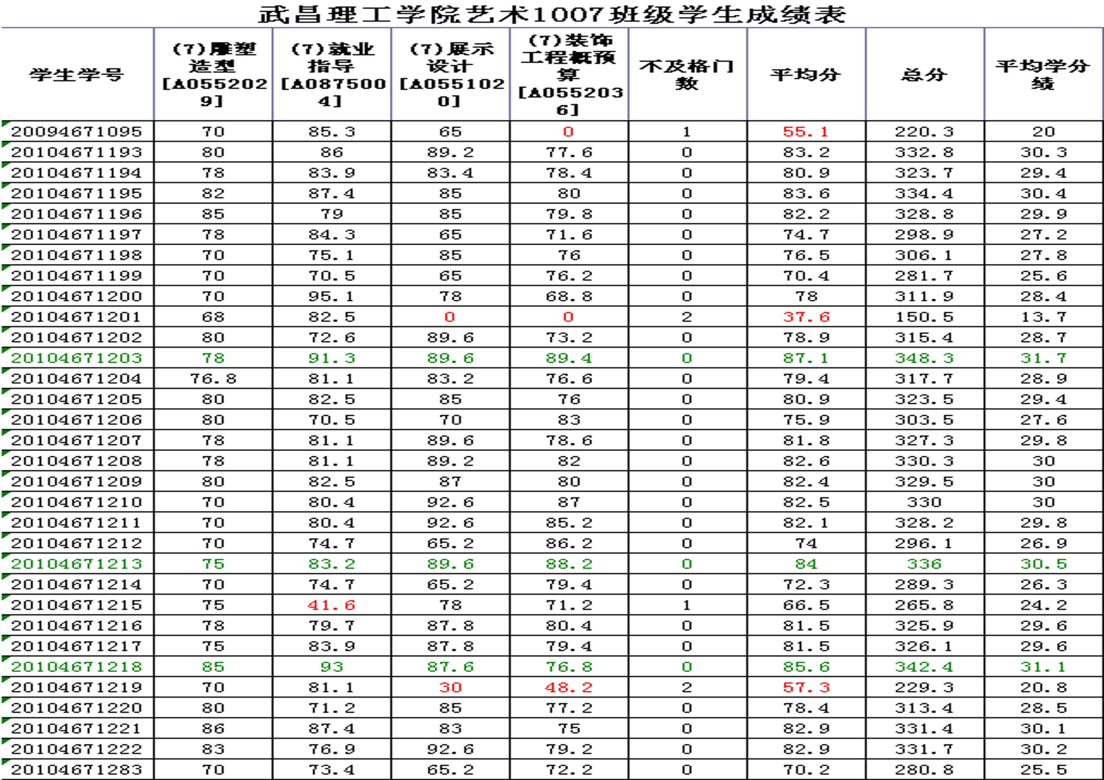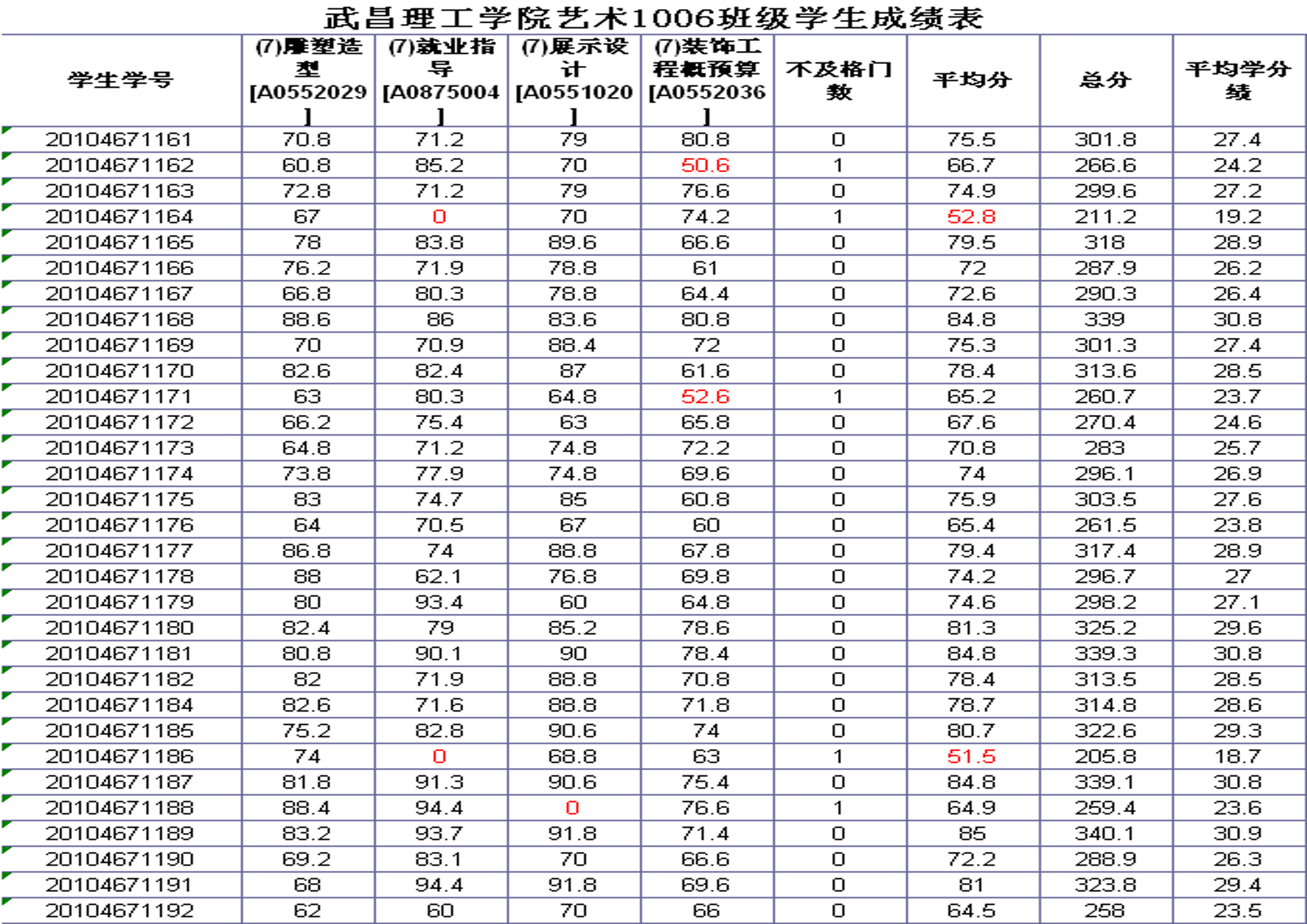 艺术设计学院2013-2014学年度第一学期2010级各专业班级考试成绩