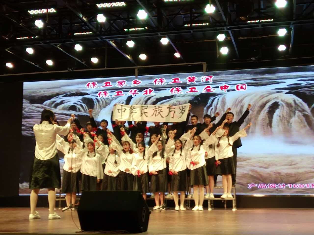 据了解,此次参加比赛的为艺术设计学院2016级的17个班级,从节目排演到最后的比赛亮相,历时一个月的时间,各班在素导的指导下,人人参与并利用课余时间积极练习,精心准备。在表演形式上,比赛以合唱为主,穿插朗诵、独唱等形式。