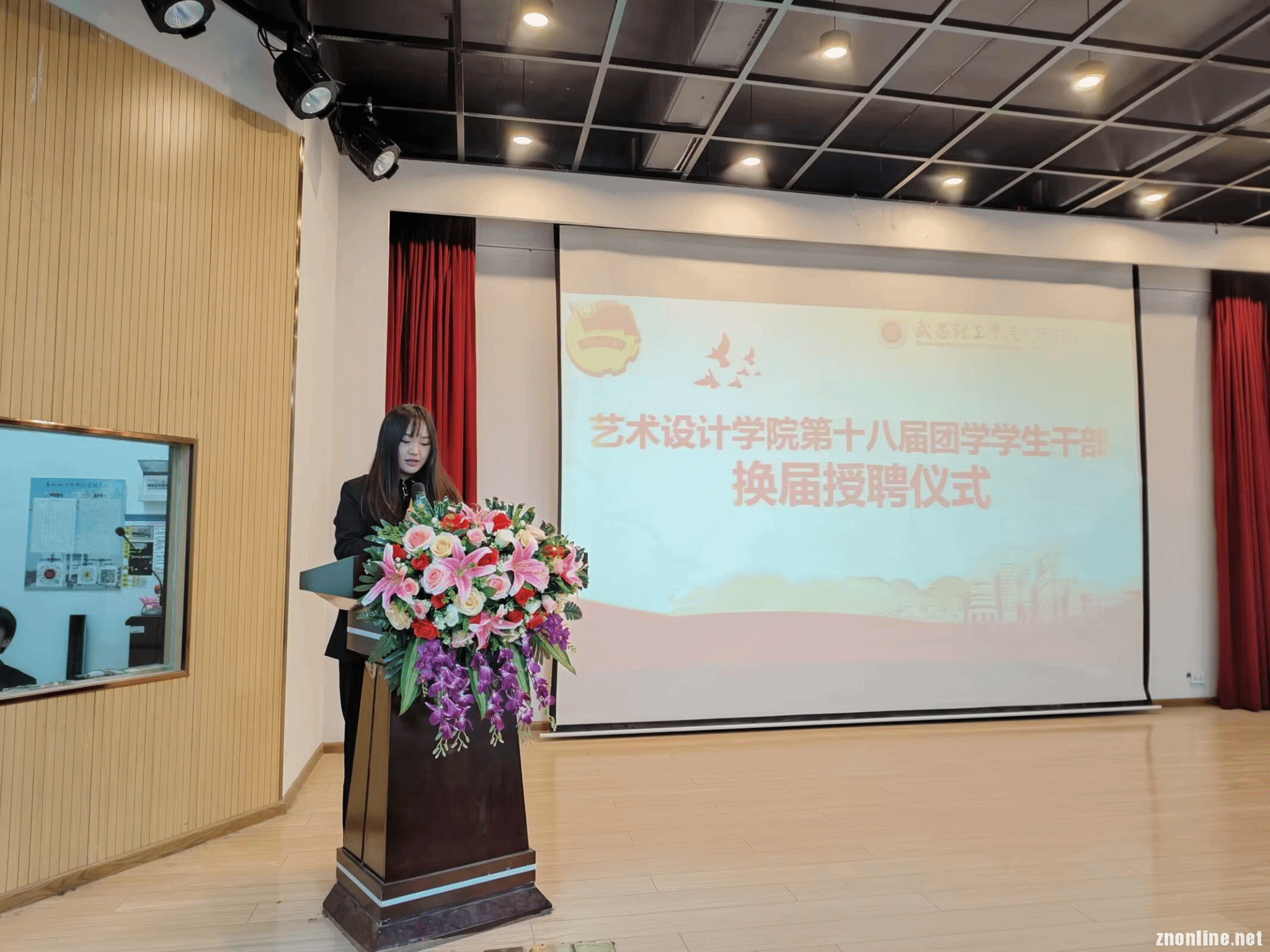 大会伊始,全体参会成员起立合唱《光荣啊 中国共青团》,大会在庄严的共青团团歌中拉开帷幕。首先,由艺术设计学院团委学生副书记杨宇鹏宣读第十八届团学干事任命红头文件。接着由各部门部长为部门干事佩戴工作牌并合影留恋。由团学干事代表带领全体团学干事进行就职宣誓,期望干事们在今后的团学工作中不忘初心、砥砺前行。最后由组织部部长肖寒雪作为部长代表上台对新一代学生干部做出期待。