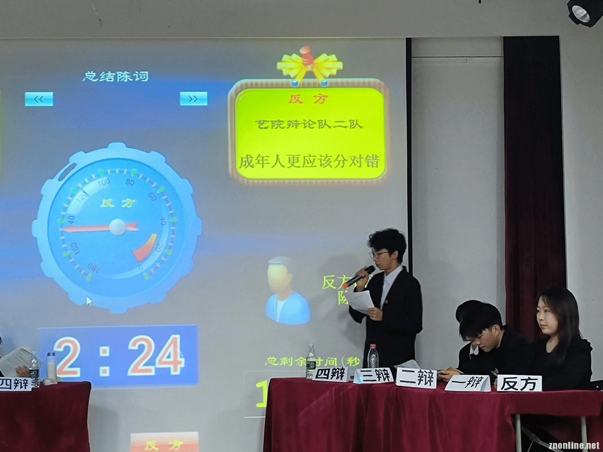 为培养一批优秀的艺术设计学院辩手,丰富学生的业余生活,增强学生的思辨能力和语言表达能力,太阳集团2138艺术设计学院于3月14日晚18时30分在艺术设计学院522报告厅举办“成年人更应该看利弊还是成年人更应该分对错”辩论赛。
