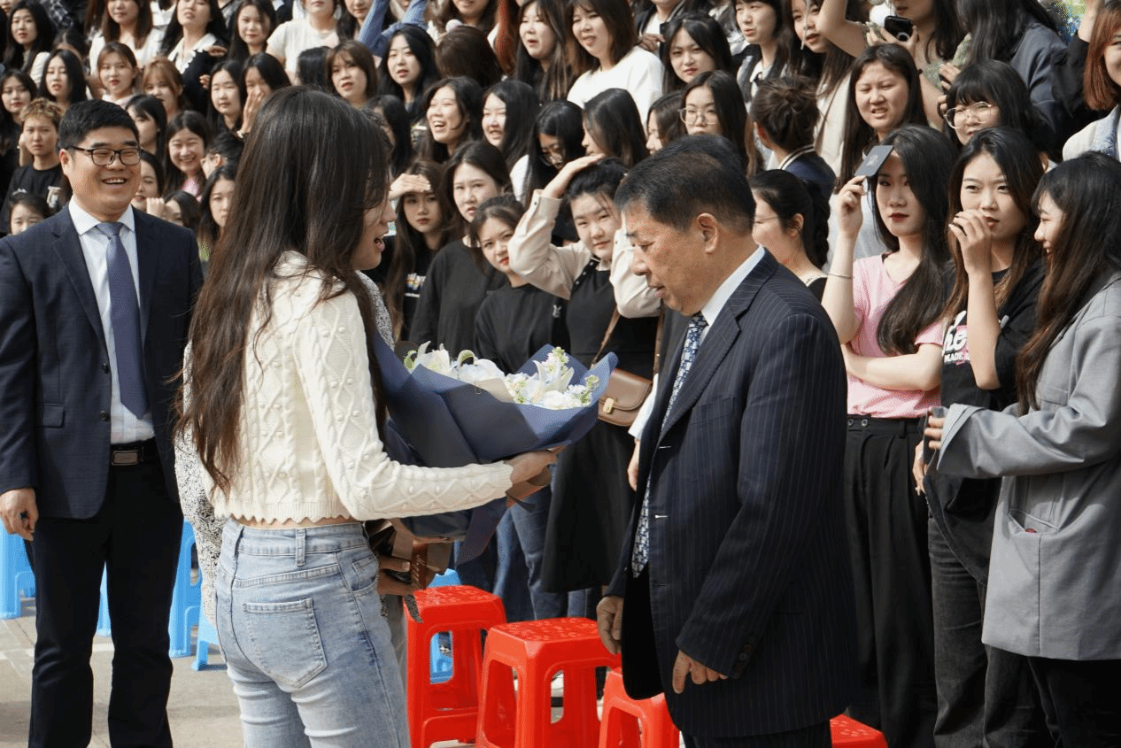 现场氛围热烈,拍摄过程中,艺术设计学院学生代表杨宇鹏和周逸雪上前为赵校长献上鲜花和最诚挚的祝福并合影留恋。毕业是一段学业生涯的结束,有人会继续留校深造,也有人从此踏上社会的征途,开始人生新的阶段。这次毕业生合照活动为同学们画上了一个阶段性的句号,他们将带着学校给予的真挚的关心和殷切的期望离校,开创新的未来。同学们纷纷表示,这是一次深刻意义的合影,他们十分感动,并表示会牢记学校的恩情和嘱托,不辜负学校的期望,创造出属于自己的美好未来。