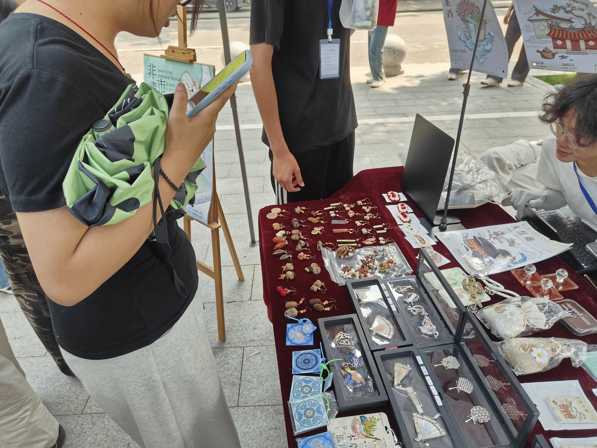 原动力创意工作室成员热情地为中外参观者介绍文创产品背后的创作理念与文化内涵。这些作品以家乡文化为灵感源泉,通过创新设计与精湛工艺,将家乡的风土人情转化为可触可感的文创精品。