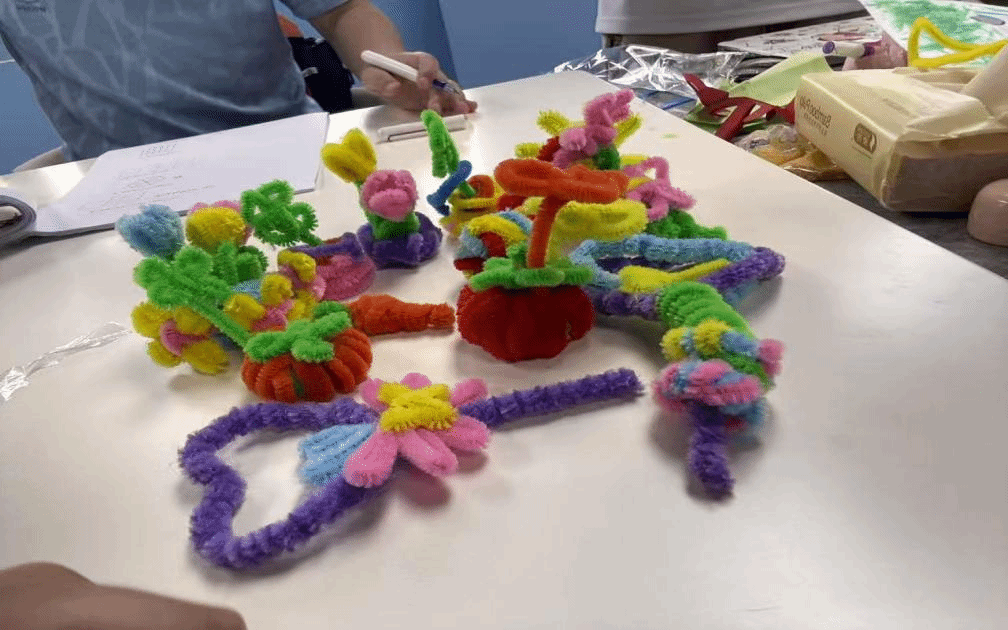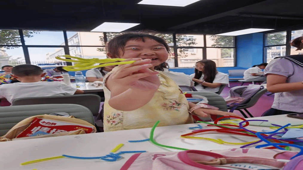 动手实践环节瞬间点燃了孩子们的热情,现场气氛活跃而热烈。五颜六色的扭扭棒分发到手,孩子们迫不及待地开始将脑海中的奇思妙想转化为触手可及的立体造型。志愿者们穿梭于孩子们中间,进行细致入微的个性化指导:对于尝试构建复杂立体结构(如昂首的恐龙、展翅的蝴蝶、多层花瓣的玫瑰)遇到困难的孩子,志愿者会及时介入,示范关键的缠绕技巧、打结加固方法或提供内部支撑的稳定性建议;对于在色彩搭配上犹豫不决的孩子,则引导他们观察真实的物体图片、讨论色彩心理学的基础感受(如暖色代表热情、冷色代表宁静),鼓励他们打破常规、大胆尝试个性化的色彩组合。在自由、包容、鼓励创新的氛围中,孩子们的创造力如泉水般喷涌。形态各异、充满童趣的作品纷纷诞生:栩栩如生的小狗、兔子、长颈鹿,娇艳欲滴的向日葵、玫瑰花,实用的眼镜、小挎包、笔筒,甚至还有充满科幻色彩的火箭、机器人。活动高潮是热闹非凡的作品展示会,孩子们自豪地举起自己的杰作,兴奋地介绍创作思路,分享成功的喜悦,掌声和欢笑充满了整个空间。