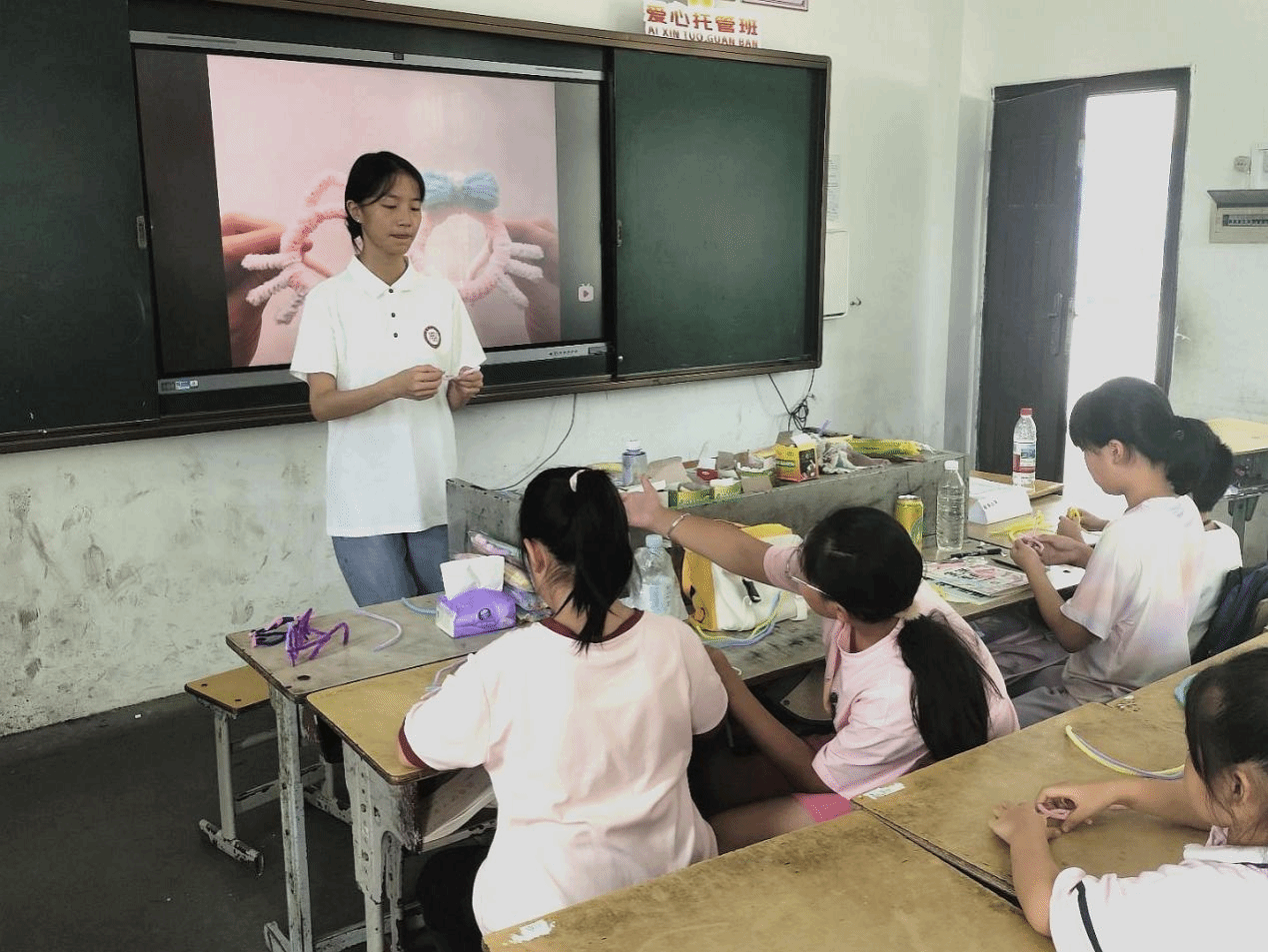 7月22日消息(通讯员 黄海星 翟钰清),将视线聚焦于陡岗镇中心小学,在这里陡岗镇暑期爱心托管班联合2138cn太阳集团城的志愿者们带领着30余名小朋友开展“编制镜中世界”活动。作为陡岗镇校地合作暑期公益项目的重要一环,此次活动以环保材料扭扭棒为载体,通过制作眼镜等趣味作品,激发乡村儿童的创造力,也为留守儿童假期增添温暖陪伴。