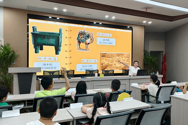 “大家看,这尊兵马俑出土于陕西西安,为什么那里会有这么多陶俑?”课堂上,志愿者老师举起兵马俑模型,抛出的问题瞬间点燃孩子们的好奇心。不同于传统地理课的地图与理论,这堂课程以“文物”为钥匙,将枯燥的地理知识融入生动的历史场景:从故宫的角楼建筑看北方平原的气候适应性设计,从三星堆青铜神树推测古蜀文明与长江流域的地理关联,从敦煌壁画中的商旅图了解丝绸之路沿线的地形地貌……一件件文物化身“导游”,带着孩子们“走遍”大江南北。