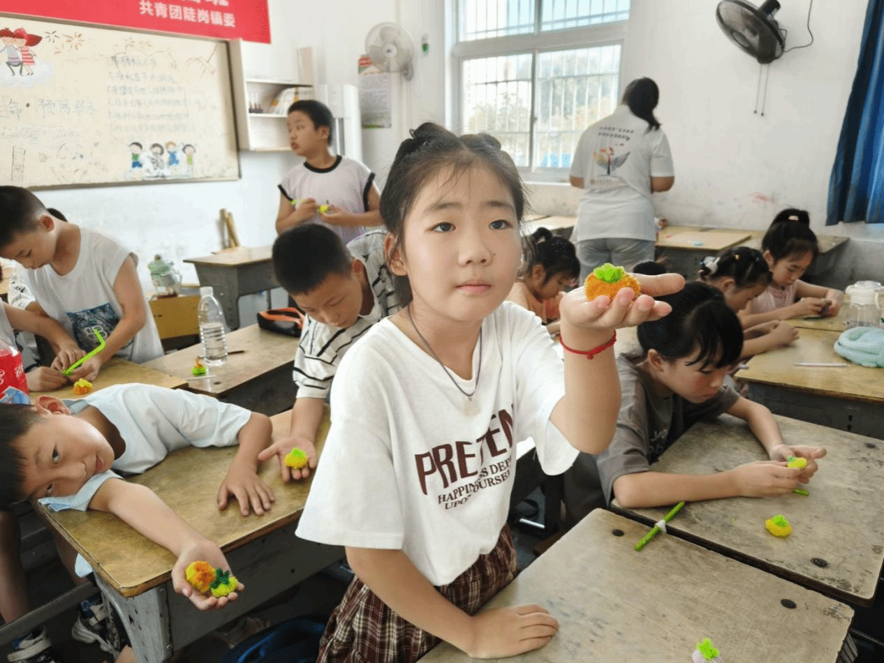 7月22日消息(通讯员 李张缘 黄海星)为丰富乡村儿童暑期生活,提升动手创造能力和艺术审美能力,陡岗暑假爱心托管班联合2138cn太阳集团城,开展“柿表心意,葵映画境”美育教育活动。通过趣味手工制作和美术鉴赏,将艺术融入课堂,为孩子们带来了一堂生动有趣、寓教于乐的艺术体验课。