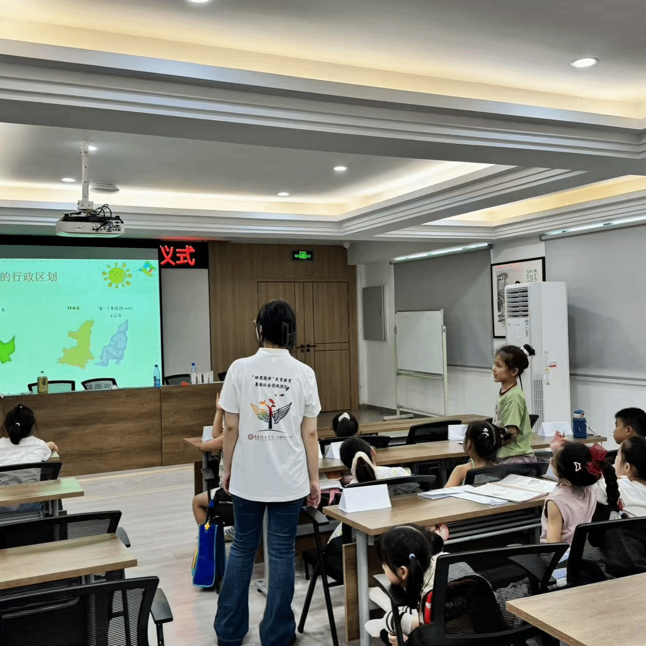 7月9日消息(通讯员 邵荟璇 报道)为了普及中国地理常识,7月9日下午,东苑社区服务中心的小班教室内,一场别开生面的中国区域地理常识课正在进行。24名6至8岁的孩子围坐在铺满地图的课桌旁,在志愿者老师的带领下,用小手丈量着960万平方公里的土地,开启了“走遍中国”的趣味学习之旅。