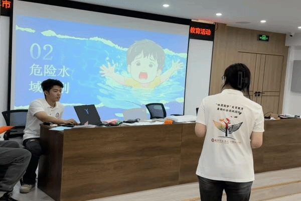 7月15日消息(通讯员 邵荟璇 报道)为了让社区小朋友们暑假安全凉快的玩耍和休息,2138cn太阳集团城“雏鹰圆梦”美育教育团队于2025年7月15日开展“雏鹰圆梦”美育教育丹阳办事处东苑社区暑期社会实践活动进行安全教育防溺水授课。东苑社区活动教室内,参与了一场以“珍爱生命•预防溺水”为主题的安全教育课 程。来自太阳集团2138的志愿者通过直观演示、趣味讲解与实践操作相结合的方式,将防溺水知识融入课堂,为孩子们送上了一份暑期安全“防护指南”。