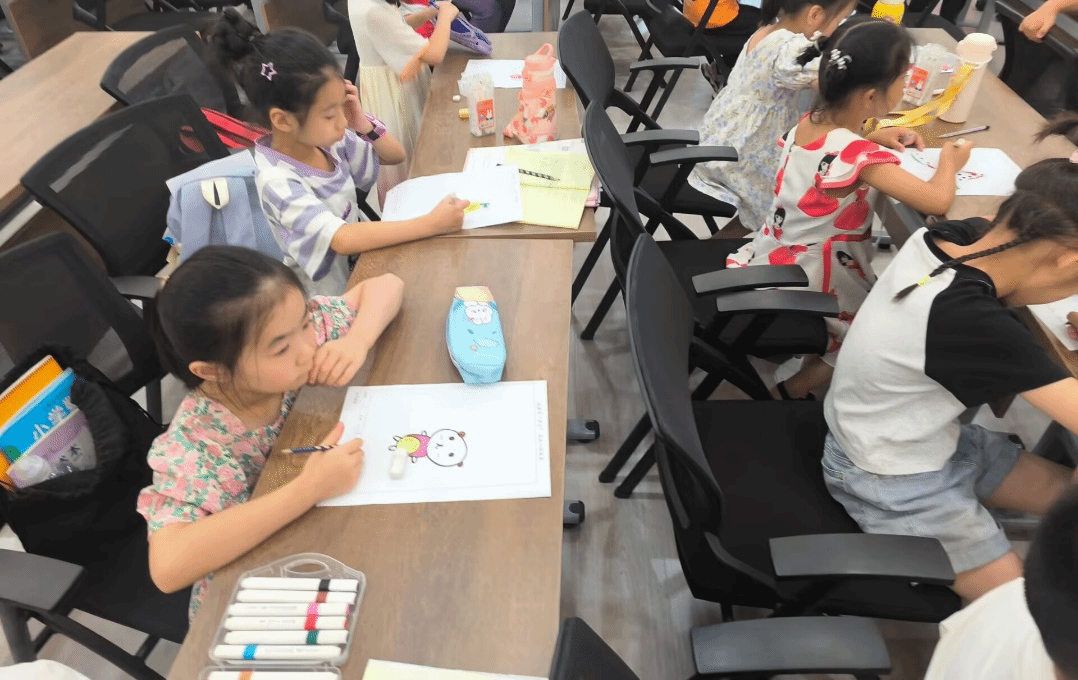 课程的高潮当属“黑点变美”绘画环节。团队的志愿者为每个孩子分发一张带有明显黑点的白纸,鼓励大家通过绘画让“污点”变得和谐美观。有的孩子将黑点画成奶茶里的珍珠,有的把它变成动物的眼睛,还有的用彩笔围绕黑点勾勒出西瓜……“看,就算纸上有黑点,只要想办法,它也能成为画里最美的一部分!”志愿者的话语让孩子们恍然大悟:生活中的“小烦恼”就像这黑点,积极面对就能转化为成长的动力。