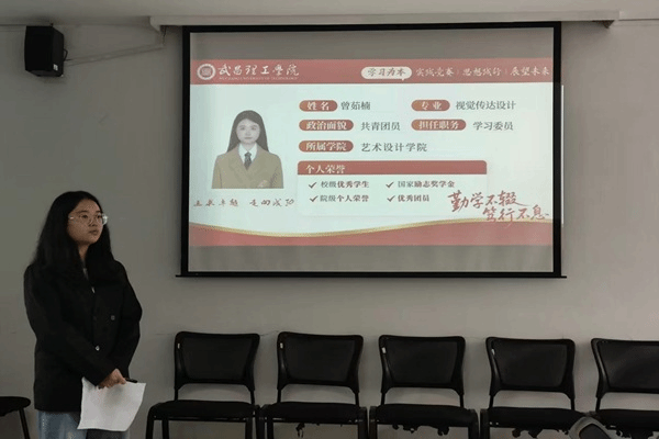 参与答辩的学生依次登场,每一位同学自信满满地走上前。曾茹楠则通过清晰的个人展示PPT,介绍了自己作为视觉传达设计专业学生,在学习、工作以及所获荣誉等方面的情况,“校级优秀学生”“国家励志奖学金”等荣誉,彰显出她在日常学习生活里,向着更优秀的方向不断迈进的姿态。