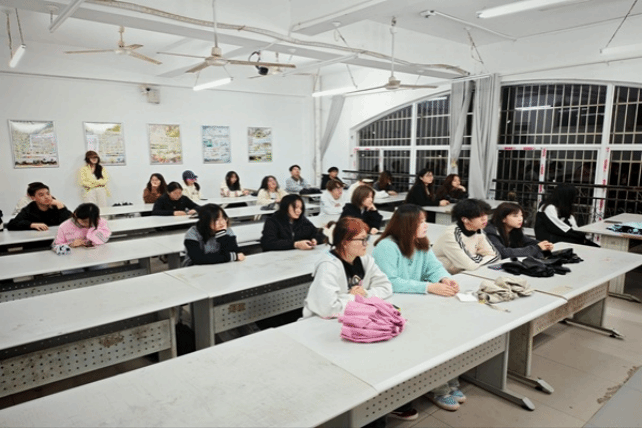活动现场,以“光影育人”为核心,组织全体25级学生集中观看《钱学森》《横空出世》等红色经典影片,通过沉浸式的视听体验,带领党员重温革命先辈、科学家们艰苦奋斗、无私奉献的峥嵘岁月,深刻感悟“热爱祖国、无私奉献,自力更生、艰苦奋斗”的精神内核,让红色基因在光影流转中浸润人心、薪火相传。观影过程中,精神饱满、全神贯注,认真记录影片中的感动瞬间与精神亮点,深刻领会红色精神的时代价值与传承意义。观影结束后,结合创意设计专业特色与自身学习工作实际,畅谈观影体会、交流思想感悟。