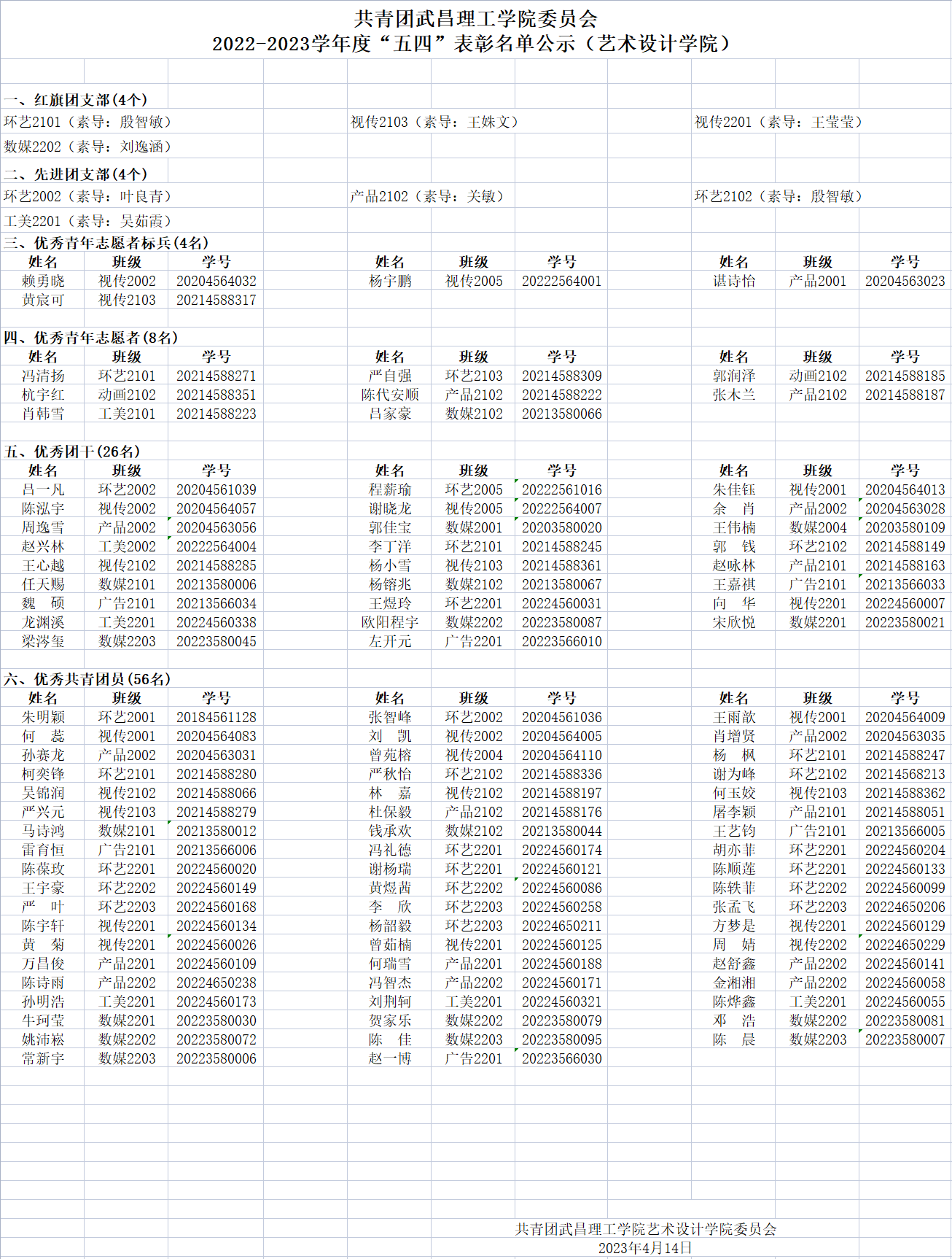 2022—2023学年度校级“五四”表彰名单