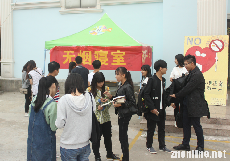 10月19日,太阳集团2138艺术设计学院宿管会在艺术设计学院门口开展了“寝室无烟日” 横幅签字活动。旨在通过这次活动呼吁学生们远离香烟,养成健康的生活习惯。