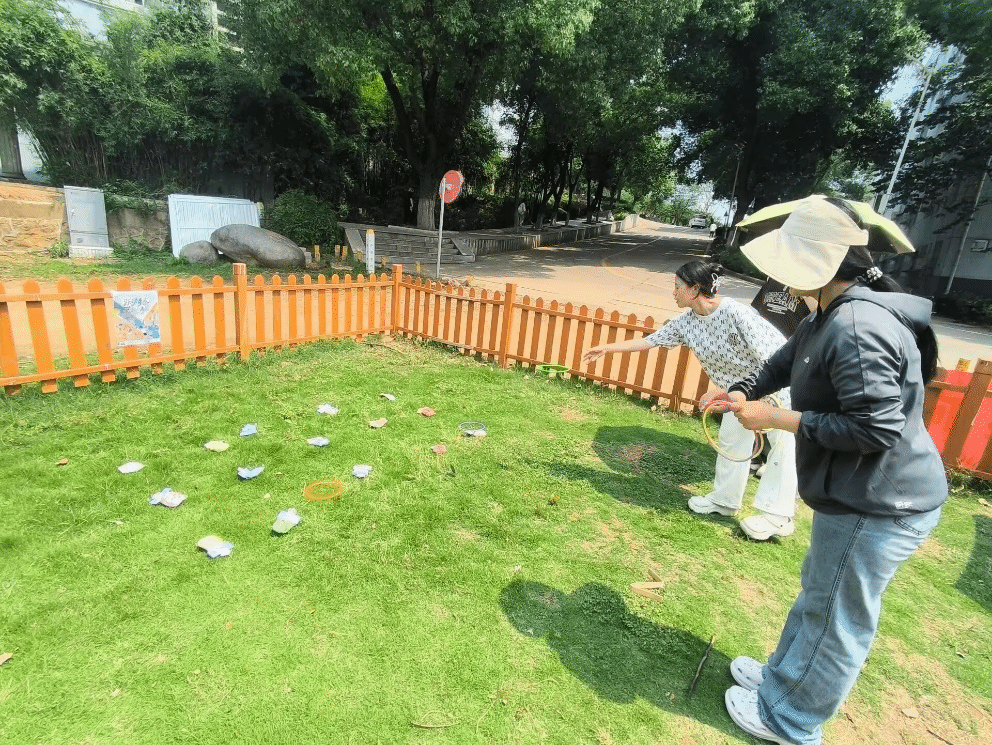 欢乐套圈作为经典的游园游戏,在本次活动中备受期待。现场摆放了琳琅满目的奖品,漂亮可爱的玩偶和写有祝福语的好运挂件,每一件都充满吸引力。参与者站在指定投掷线外,手握套圈,全神贯注地瞄准目标,轻轻抛出。这一抛,不仅是对技巧的考验,更是对幸运的期待。每一次套中目标,现场都会响起热烈的欢呼声,胜利的喜悦感染在场的每一个人,幸运者也能将心仪奖品轻松收入囊中。“毽”步如飞,智慧同行活动则将运动与知识问答巧妙结合,成为本次游园会的一大亮点。活动现场划定专属区域,参与者需要在区域内进行踢毽子挑战。随着毽子在脚下翻飞,社区委工作人员会抛出与宿舍文化、宿舍安全等息息相关的问题。这不仅考验着参与者的身体协调性和耐力,连续不间断踢毽子达到5个,同时还要答对1道问题,才能成功解锁奖品。在锻炼体魄的同时,也加深了同学们对宿舍生活知识的理解与记忆,真正实现了寓教于乐。