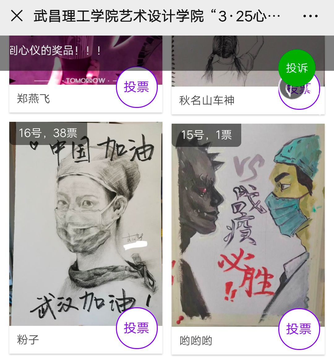 活动开展时,各班同学们纷纷积极参与,共收集了五十三件作品,所有的作品都展现了同学们对生活的热爱、对未来的美好期待以及对当下疫情防控的逆行者的敬意。心理工作室将有代表性的作品发起投票,全院同学都可以选择心仪的画幅。
