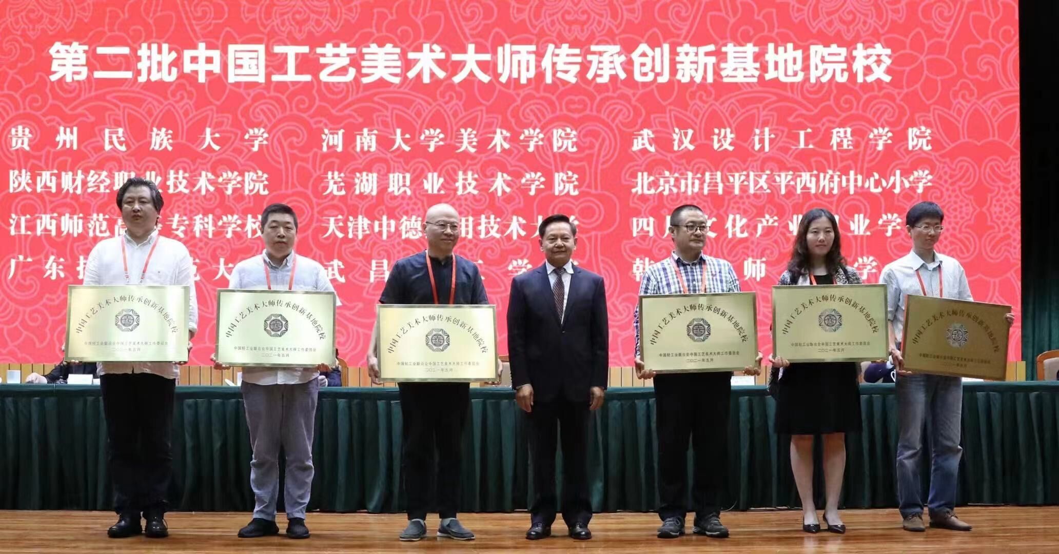太阳集团2138艺术设计学院工艺美术系主任黄俊、刘泽东大师参加了会议并代表学校领奖,他说,学校被授予“中国工艺美术大师传承与创新基地院校”,这为工艺美术专业的发展提供了新的动力,将以此为契机,充分有效利用大师资源,加强与大师在课程建设、专业建设、科研建设等方面的全方位合作,把工艺美术这块“金字招牌”擦得更亮,并努力向“国家级一流本科专业建设点”发起强有力冲击,争取进入国家一流行列,为提高专业人才培养水平做出积极贡献。