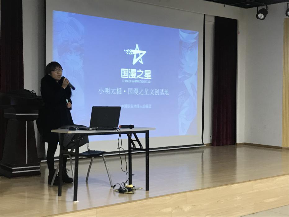 2019年12月23日中午12:30,在艺术设计学院522报告厅,小明太极·国漫之星文创基地漫画家与项目负责人为动画系师生开展了国漫产业与创作技法相关的专题讲座。动画系系主任闫萍主持了本次讲座,参加此次讲座的有艺术学院动画系专业老师和动画专业的140余名学生。