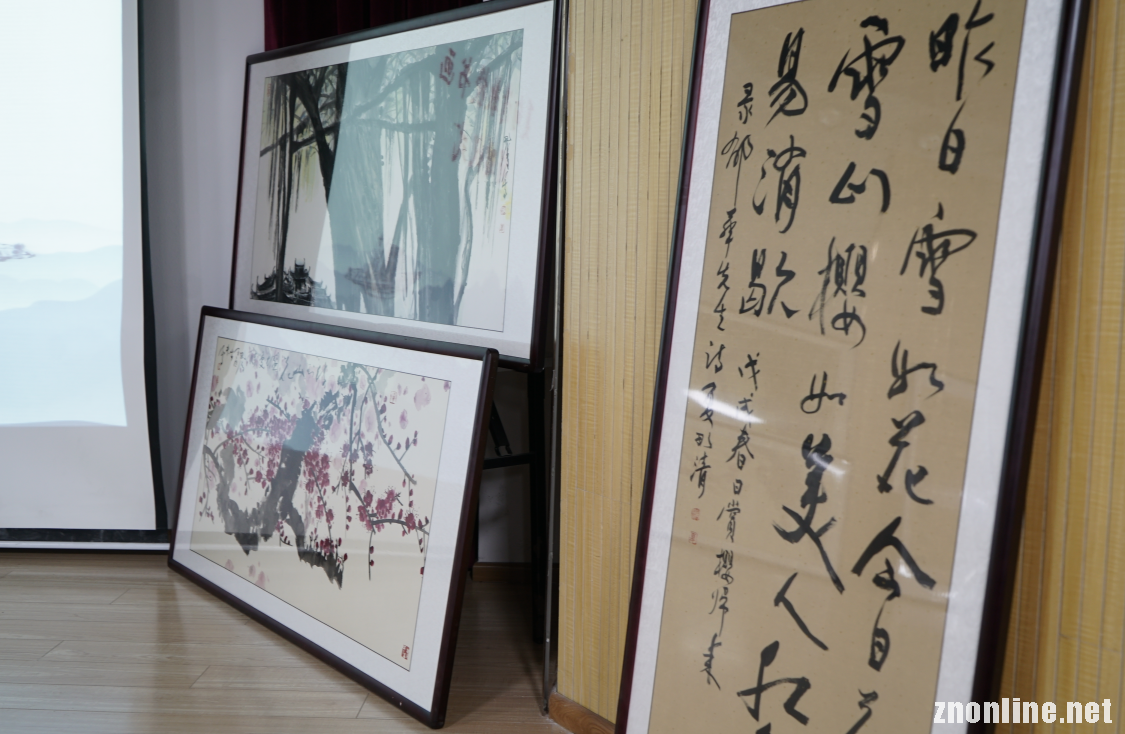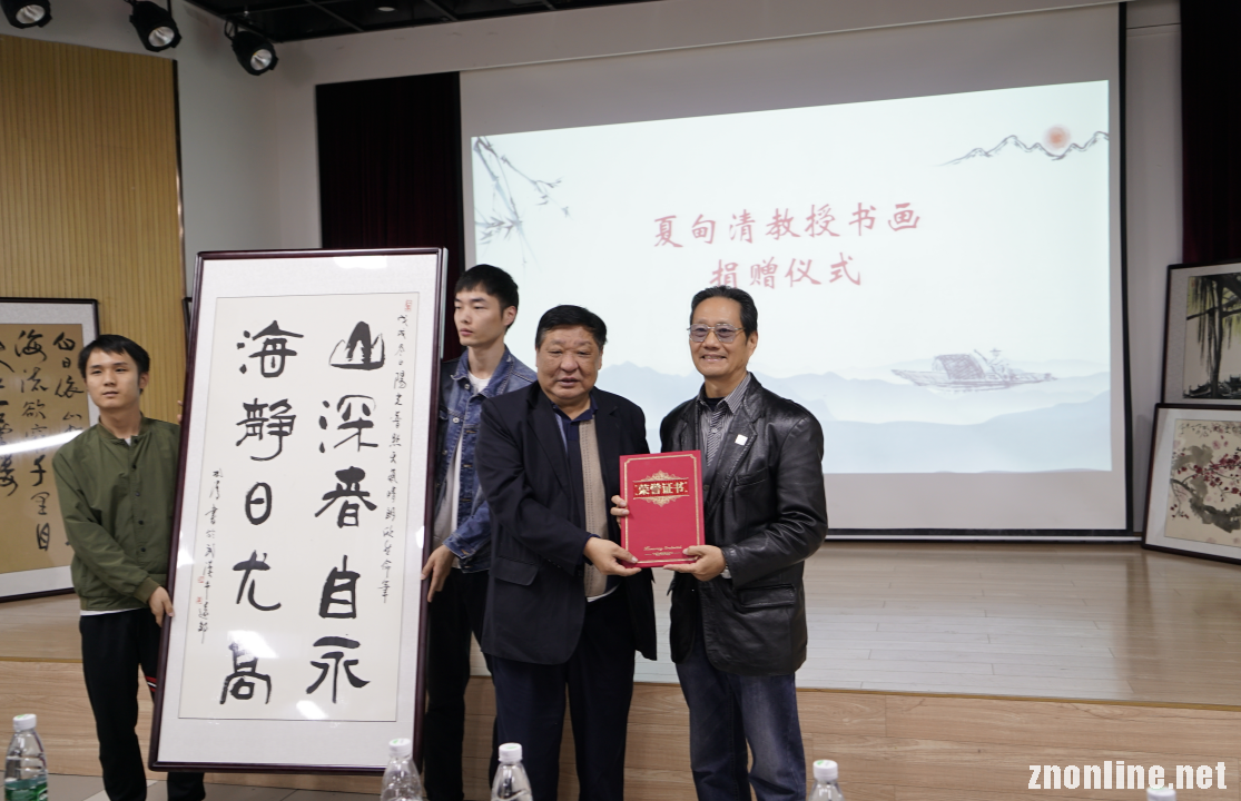夏甸清教授在仪式上分享了自己书画创作的历程。他表示,教育提倡培养“德智体美劳”全面发展的社会主义建设者和接班人,但是长期以来对“美”的培养有所缺失,近年来引起了重视,所有人都应该加强“美”的学习,从而提升文明素质。他分享了自己的一次创作经历,他说,有次去福建采风看到了榕树林,这些榕树生命力很强,根系发达,独木成林,让人很感动,回来之后就一口气利用半个月时间创作了系列作品。他希望同学们学习榕树的精神,努力学习,在祖国的四面八方扎根,多做贡献。