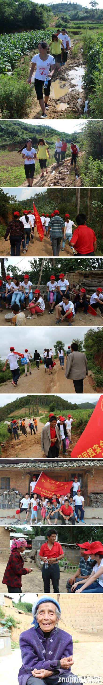 为切身实地感受云南山区儿童上学艰辛,支教队员们决定认真的把这几条艰苦的路走一遍。在走“上学路”的过程中,每走进一个村,队员们都会和村里的老人小孩交谈,并将一些橡皮、彩笔、文具盒等作为小礼物送给孩子们。队员们发现,有些家庭只有老人拄着拐杖坐在门口。这时,队员们便会停留下来陪老人家聊天,给老人家唱歌。