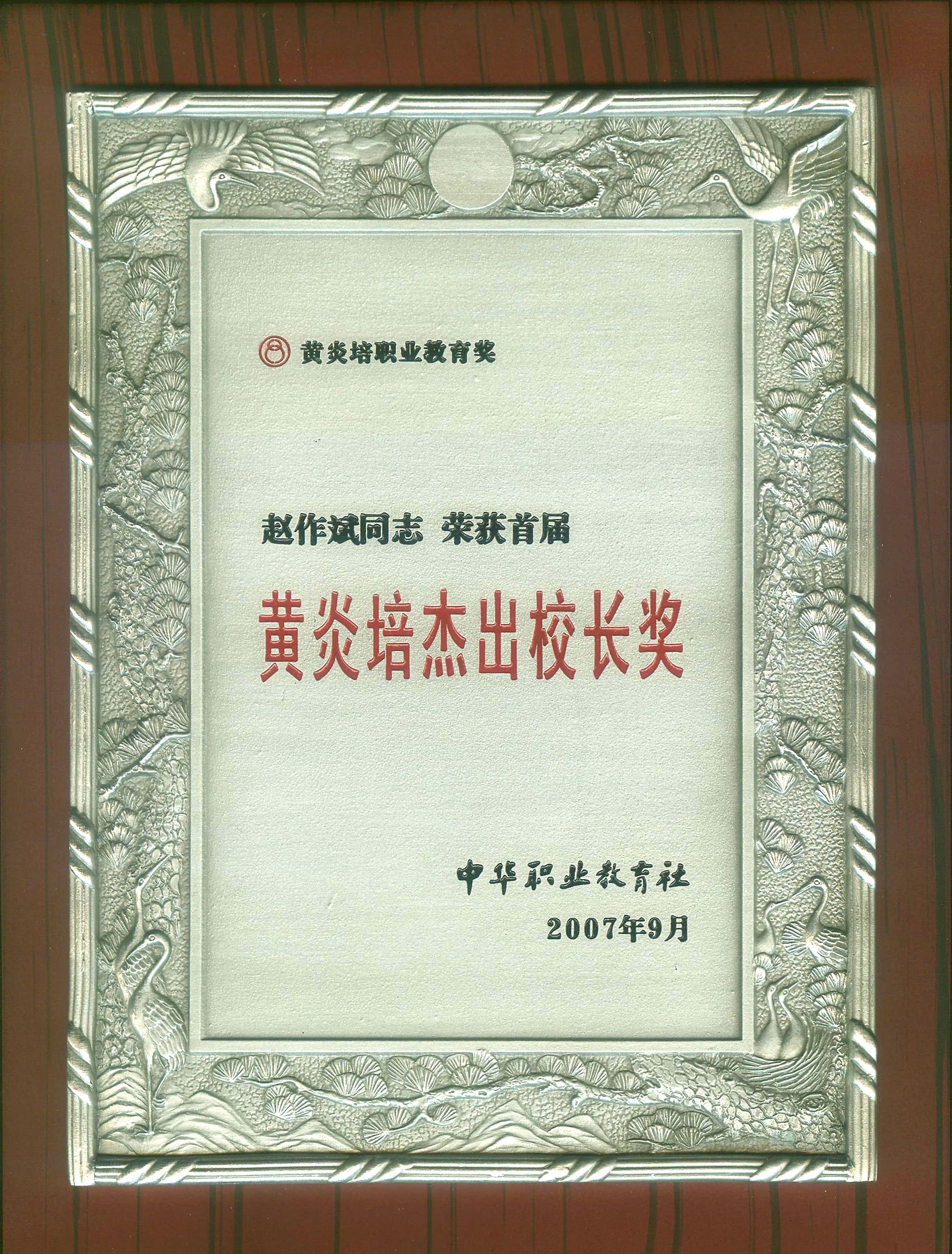 ¨ 2007年中华职业教育社授予校长赵作斌教授为首届“黄炎培杰出校长奖”