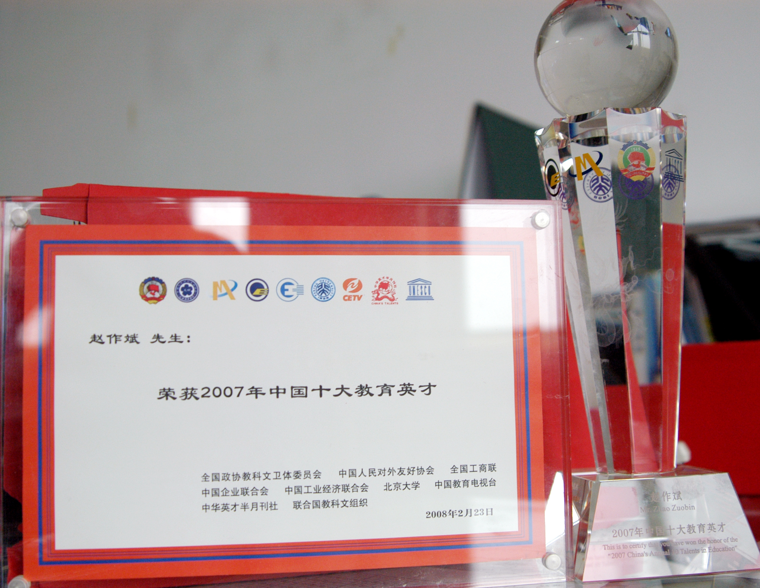 ¨ 2007年全国政协教科文怀体委员会校长赵作斌教授荣获"2007年中国十大教育英才"称号
