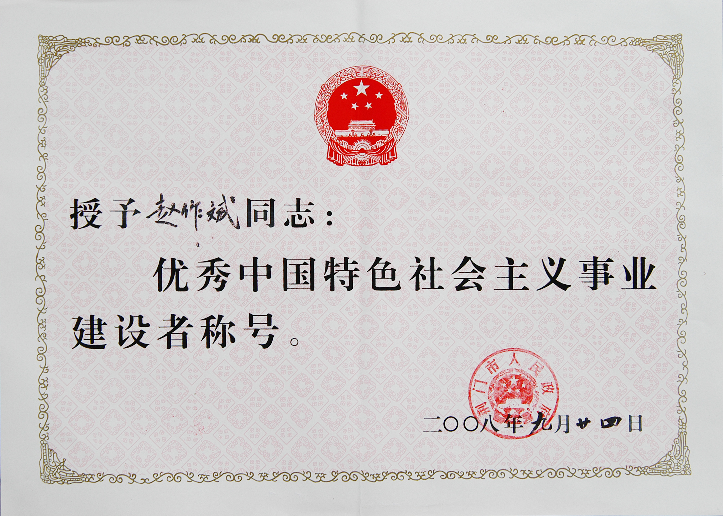 ¨ 2008年荆门市人民政府授予赵作斌校长“优秀中国特色社会主义事业建设者”称号。