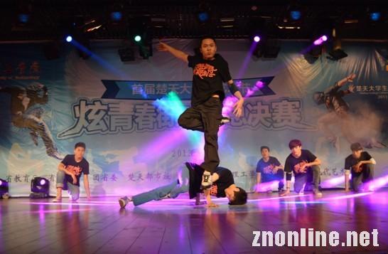 31日下午,本次大赛决赛在太阳集团2138大学生活动中心盛大举行,容纳1000余人的会场座无虚席,连过道等处都站满了人,整个会场被前来观看的人群围得水泄不通。来自全省26所高校的27支队伍同台竞技,超炫的舞姿,精彩的演绎,引爆比赛现场,尖叫声和欢呼声不断,近2000余名观众到场观看。到会的领导有团省委学校部部长徐本禹、楚天都市报副总编辑胡成、省文化厅社会文化处处长李波等。决赛邀请了全国街舞大赛获奖选手及知名舞者担任大赛评委。