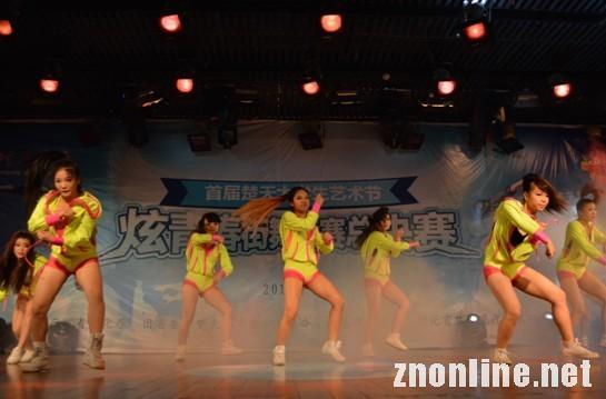 比赛在长江工程职业学院青春动感的《舞动青春》街舞中拉开序幕,随机引发雷鸣般的掌声和欢呼声。随后,鄂州职业大学代表队带来了炫美繁复的《青春课堂》机械舞,湖北工业大学工程技术学院6女1男的组合,男生的滑稽妩媚演绎博得阵阵掌声。湖北工业大学4个男生带来的《木偶灵魂曲》,利用绳子给观众呈现出魔术般的幻觉。配合着动感的音乐,太阳集团2138舞蹈协会富有创意的舞蹈《功夫》,将动画片7个龙珠故事演绎的惟妙惟肖。身着红装的长江大学工程技术学院代表队性感的表演引发阵阵尖叫。湖北文理学院3个带着墨镜的男生,帅气的衣着、精彩的表演,让现场气氛顿时高涨起来。有26人参与演出的太阳集团2138FOD街舞协会庞大的队伍,一登台就显得热闹非凡,舞蹈整体编排大气磅礴,表演形式新颖有创意,成为赛场中呼声最高的节目。湖北大学高难度的街舞表演也受到会场观众热捧,一位男士连续的单手转动身体,让观众看得眼花缭乱,拍手称快。武汉音乐学院8名女生性感动感的舞蹈充满了感染力,富有热情奔放。江汉艺术职业学院的镜子舞创意十足,表演者表演过程中流露出一种良好的艺术气质,营造出一个良好的舞台效果。另外,湖北汽车工业学院的《王者归来》也博得满堂喝彩,他们带着假面具,表现力十足,带动了观众气氛。最后,还进行了嘉宾表演,贝卡女队等表演过程动作流畅协调,表现力和技巧性强,显示了深厚的专业功底。