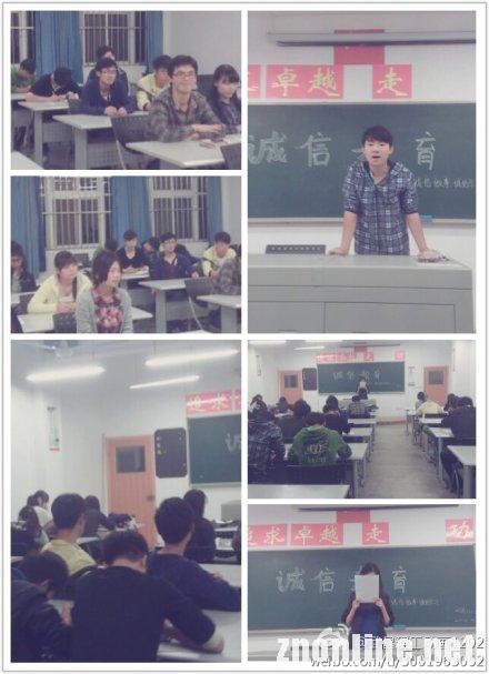 据了解,“诚信”主题班会由学工处发起、校团委负责组织与考核,各学院和班级结合本学院的实际情况,形式多样、各具特色的组织开展。根据检查情况来看,很多班级都觉得本次主题班会有现实意义,同学们都愿意主动参加并踊跃地说出了自己身边的有关诚信的小故事,对如何做到“诚信”提出了很多倡议,班会气氛十分活跃。宣誓和签署承诺书环节是此次班会的高潮,宣誓时同学们都站得笔直,右手握成拳高举,跟着主持人一字一句的严肃地做出了承诺,接着争先恐后地在协议书上郑重地写上了自己的名字。